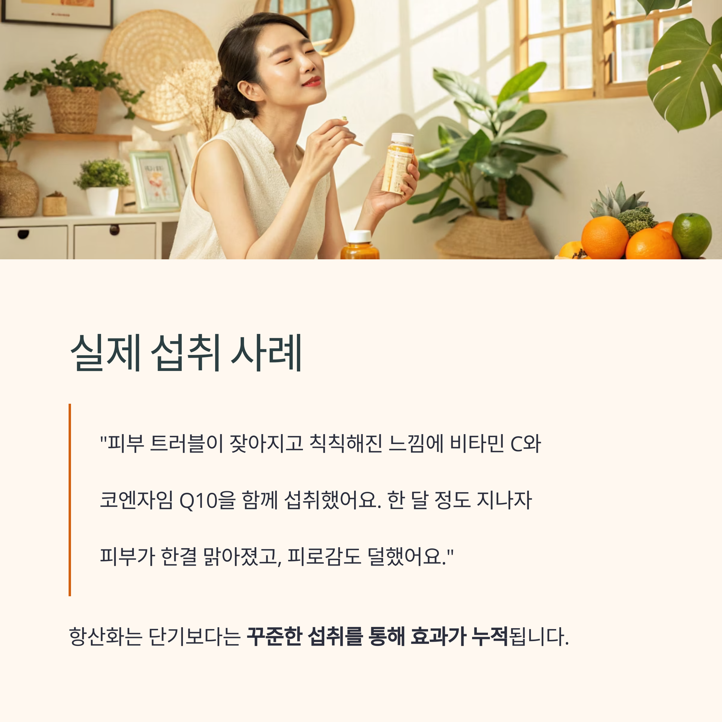 실제 섭취 사례: 피부 건강을 위해 항산화 시작한 30대