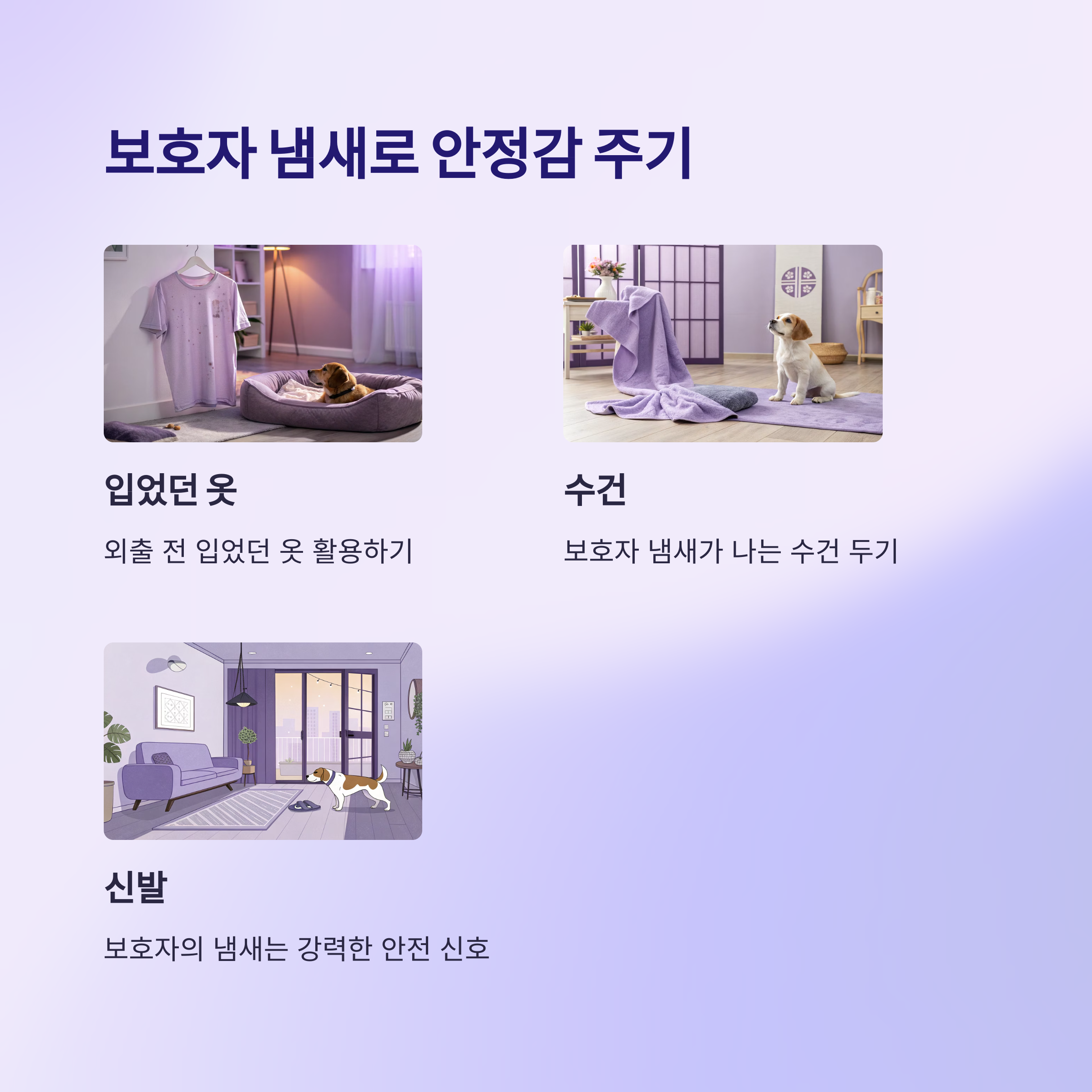 로도 큰 안정 효과를 줄 수 있습니다. 보호자의 냄새는 강아지에게 가장 강력한 ‘안전 신호’입니다.