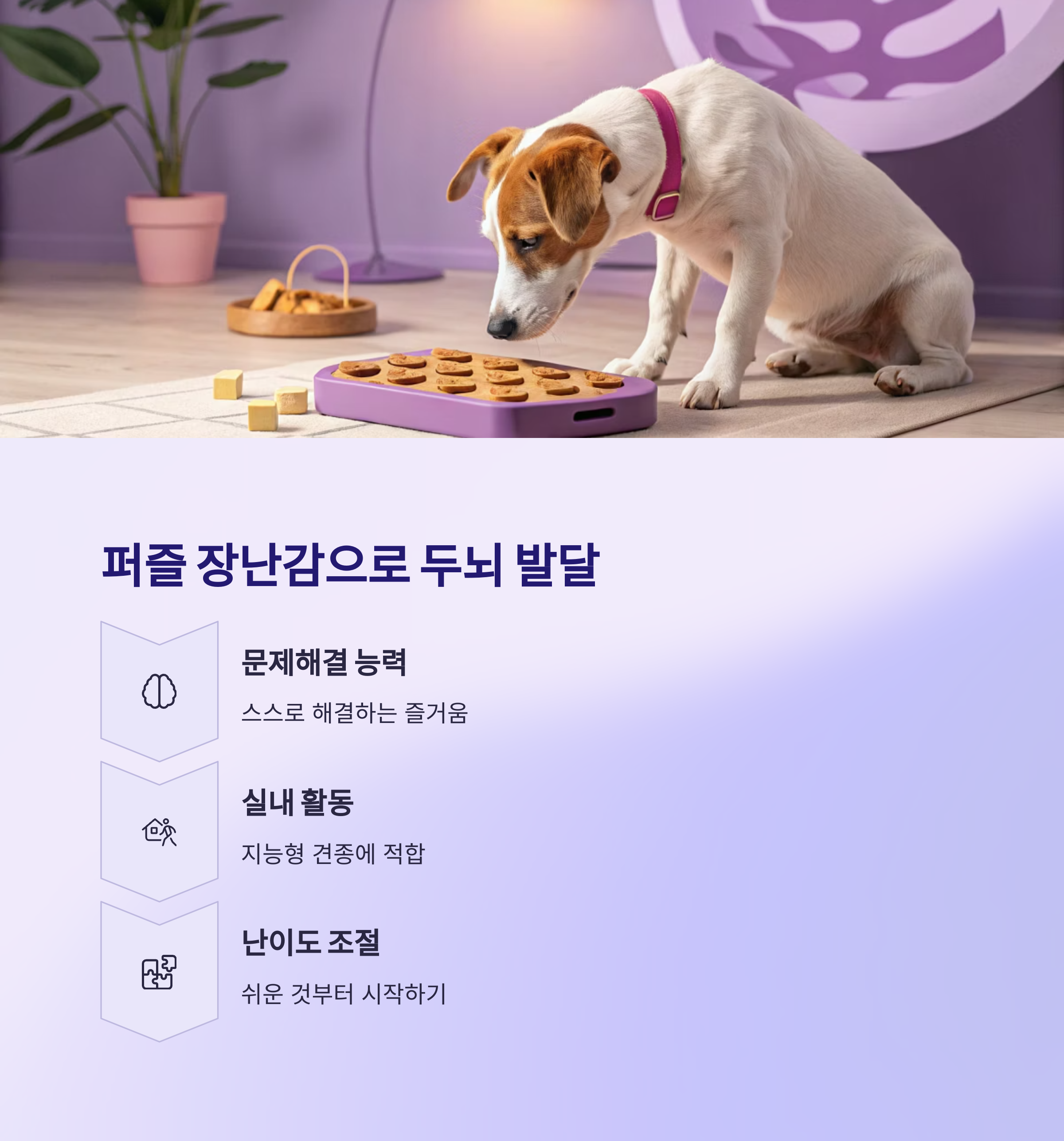 | 퍼즐 장난감 | 지능 개발, 식사 조절 | 실내견, 지능형 견종 |