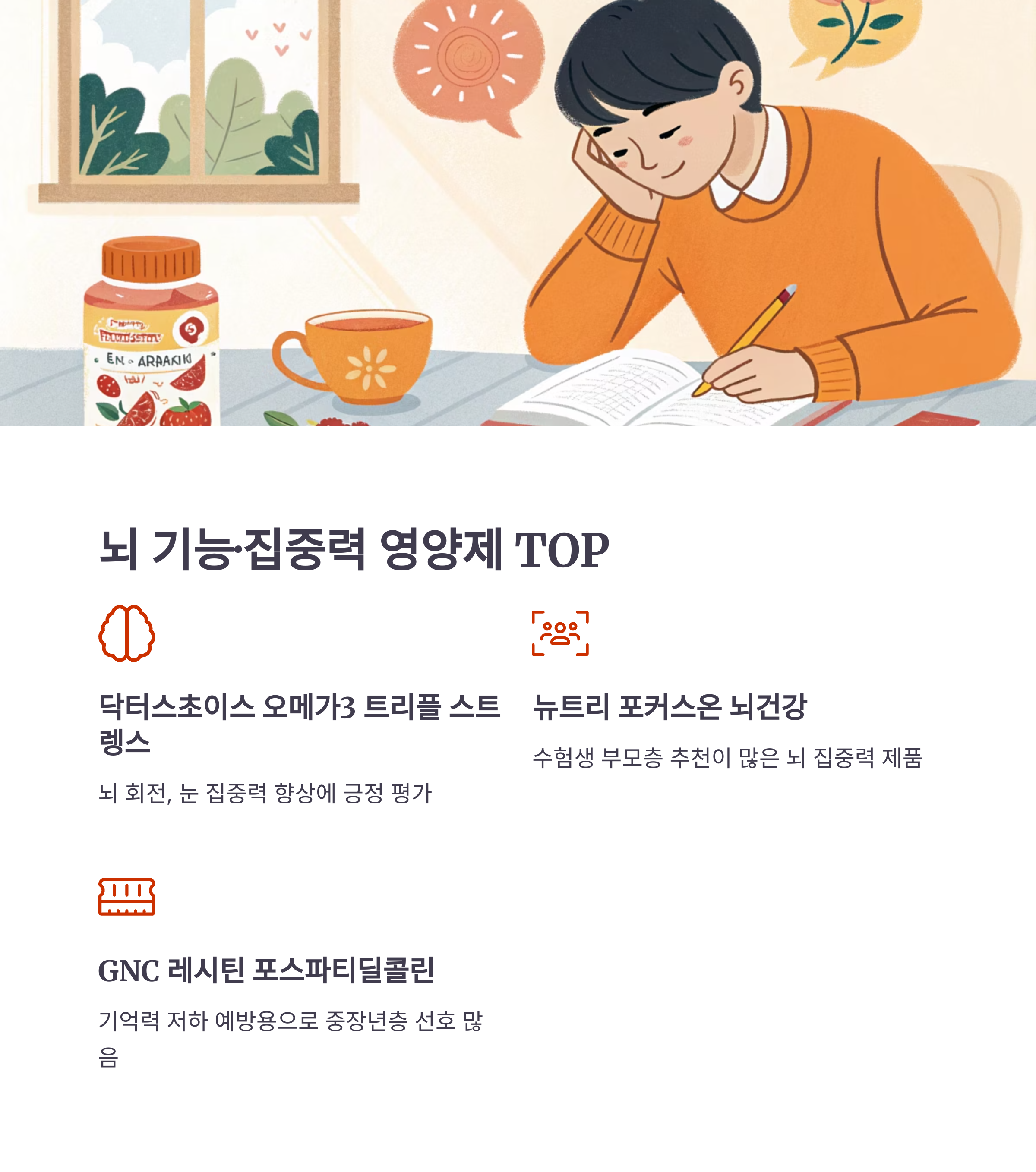 뇌 기능·집중력 영양제 실사용 톱 제품