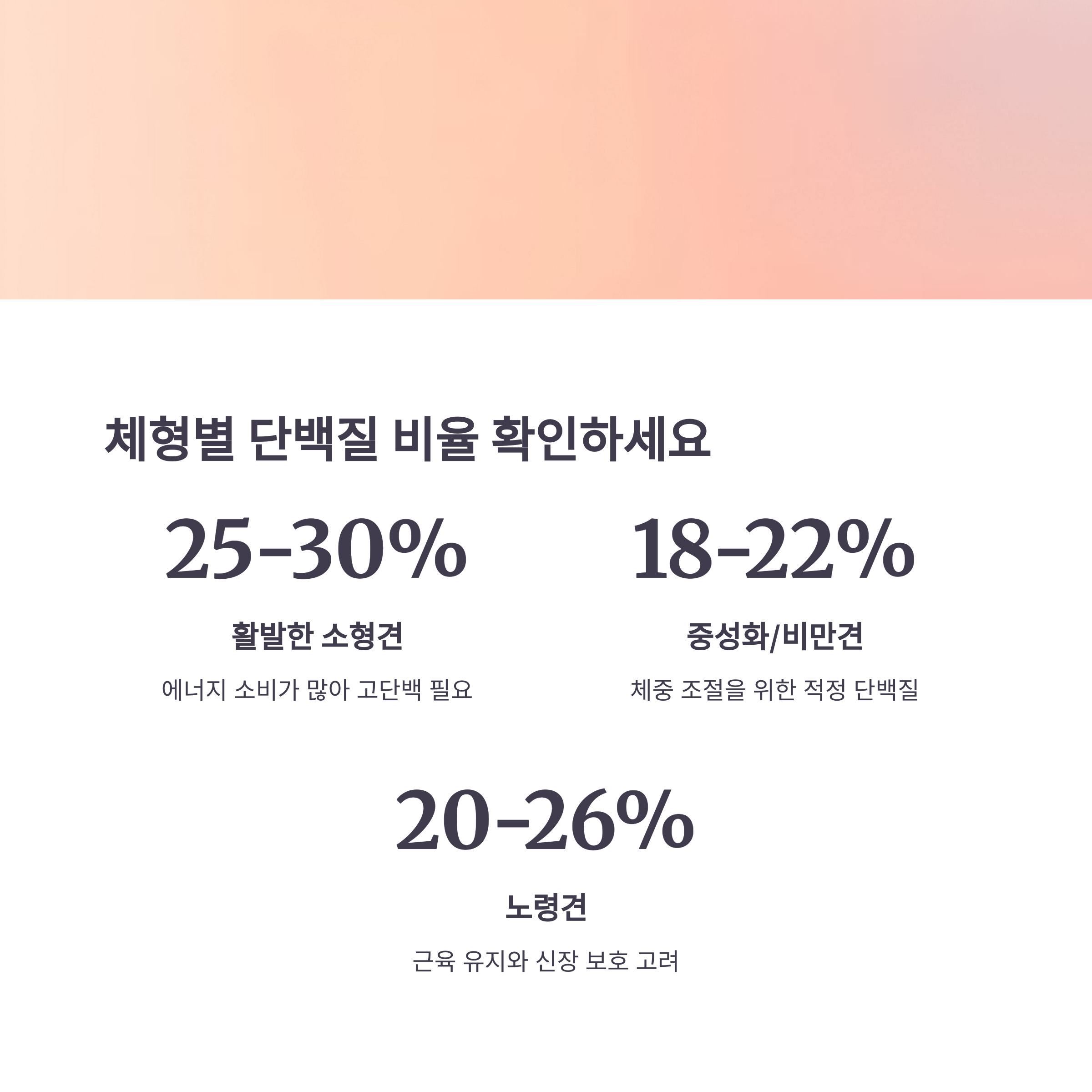 | 활발한 소형견 | 25~30% | 에너지 소비 많아 고단백 필요 |