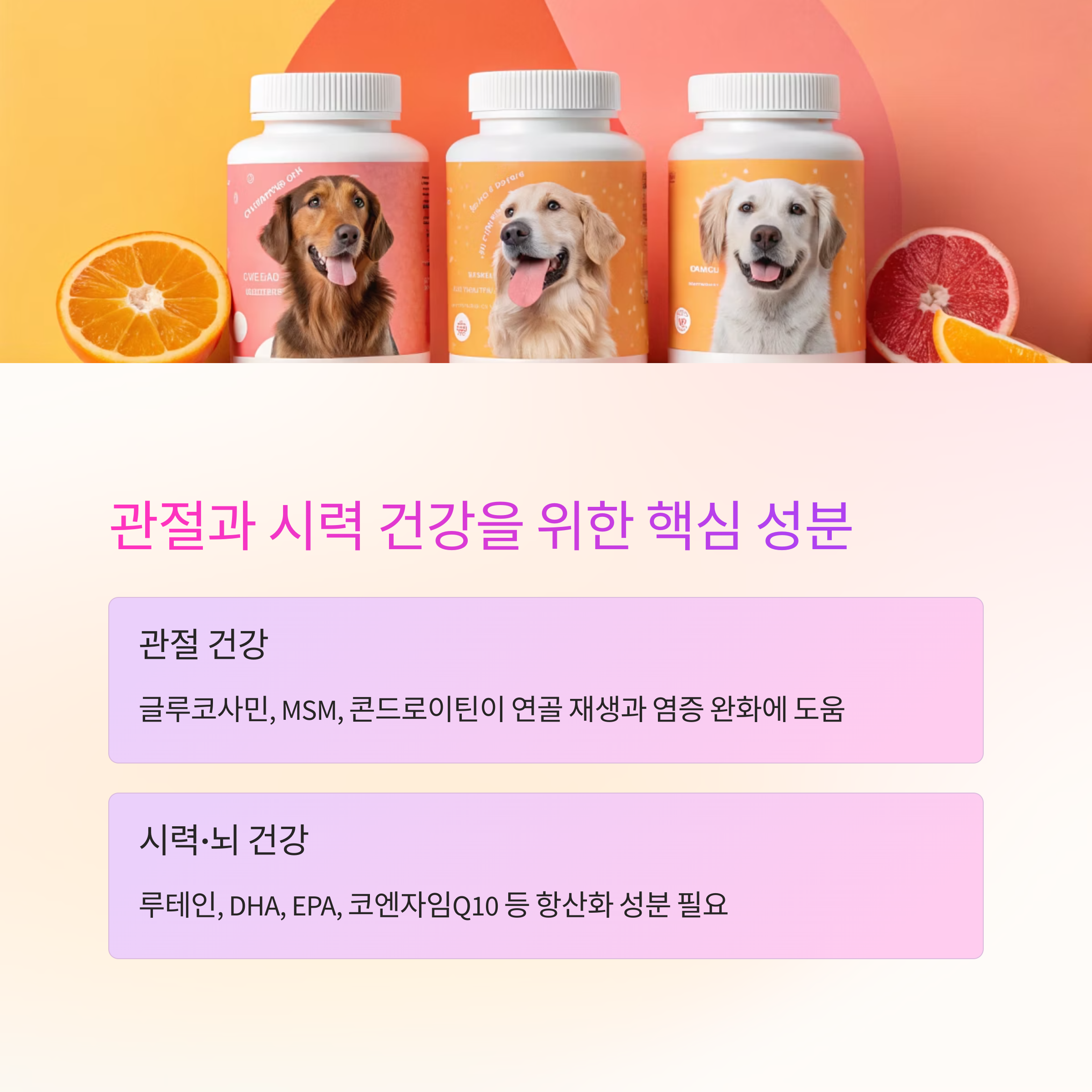 강아지도 나이가 들면 관절, 시력, 소화, 면역력 등 다양한 신체 기능이 떨어지기 시작합니다. 이때 필요한 것이 바로 맞춤형 영양제입니다. 하지만 시중에 제품이 너무 많아 무엇을 기준으로 선택해야 할지 고민되는 분들이 많죠. 이번 글에서는 노령견에게 꼭 필요한 성분부터 제품 선택 시 체크할 포인트, 수의사 상담 시 팁까지 실제 적용 가능한 정보로 정리해드립니다.