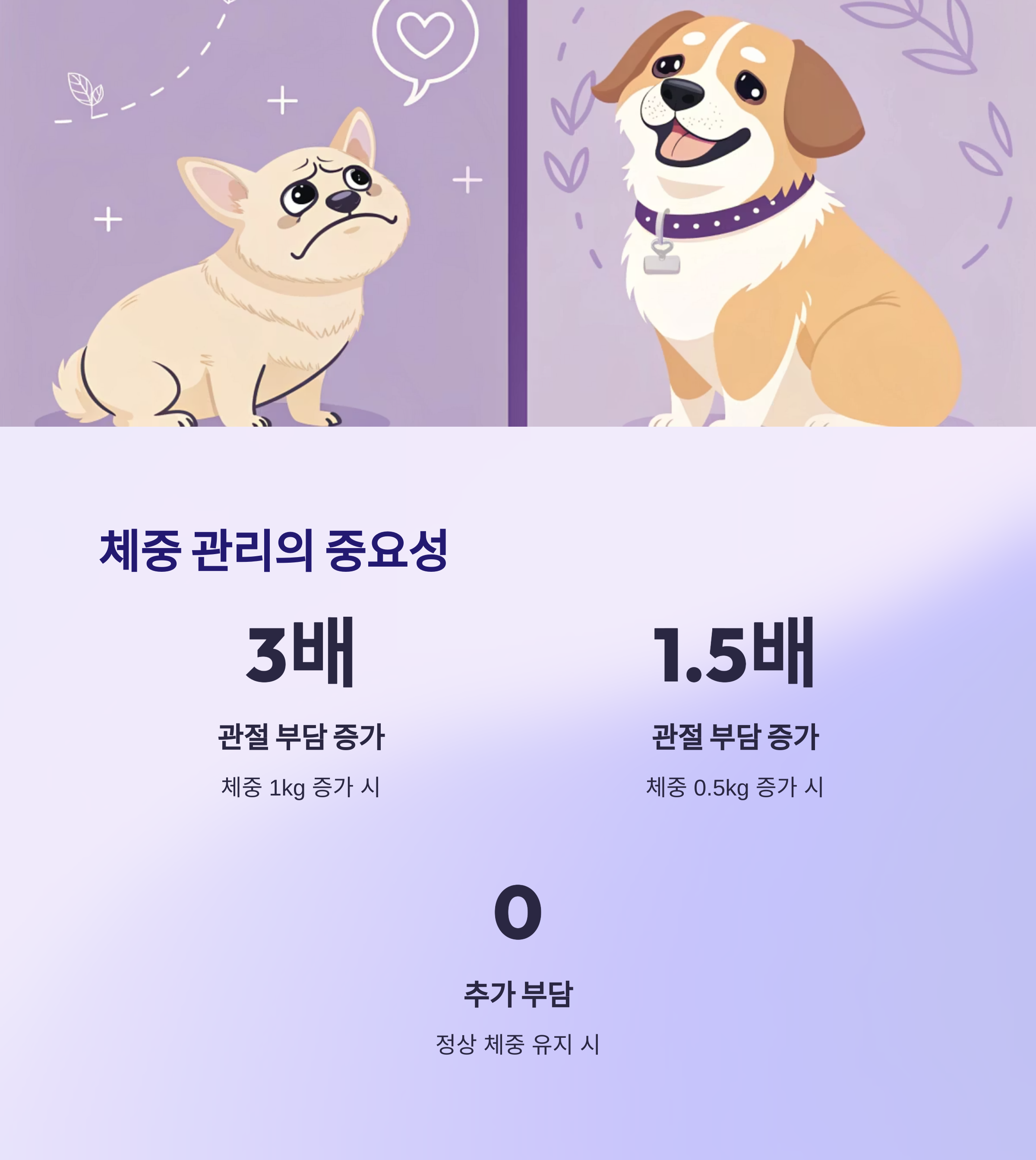 강아지의 체중은 슬개골 관리에서 매우 중요한 요소입니다.