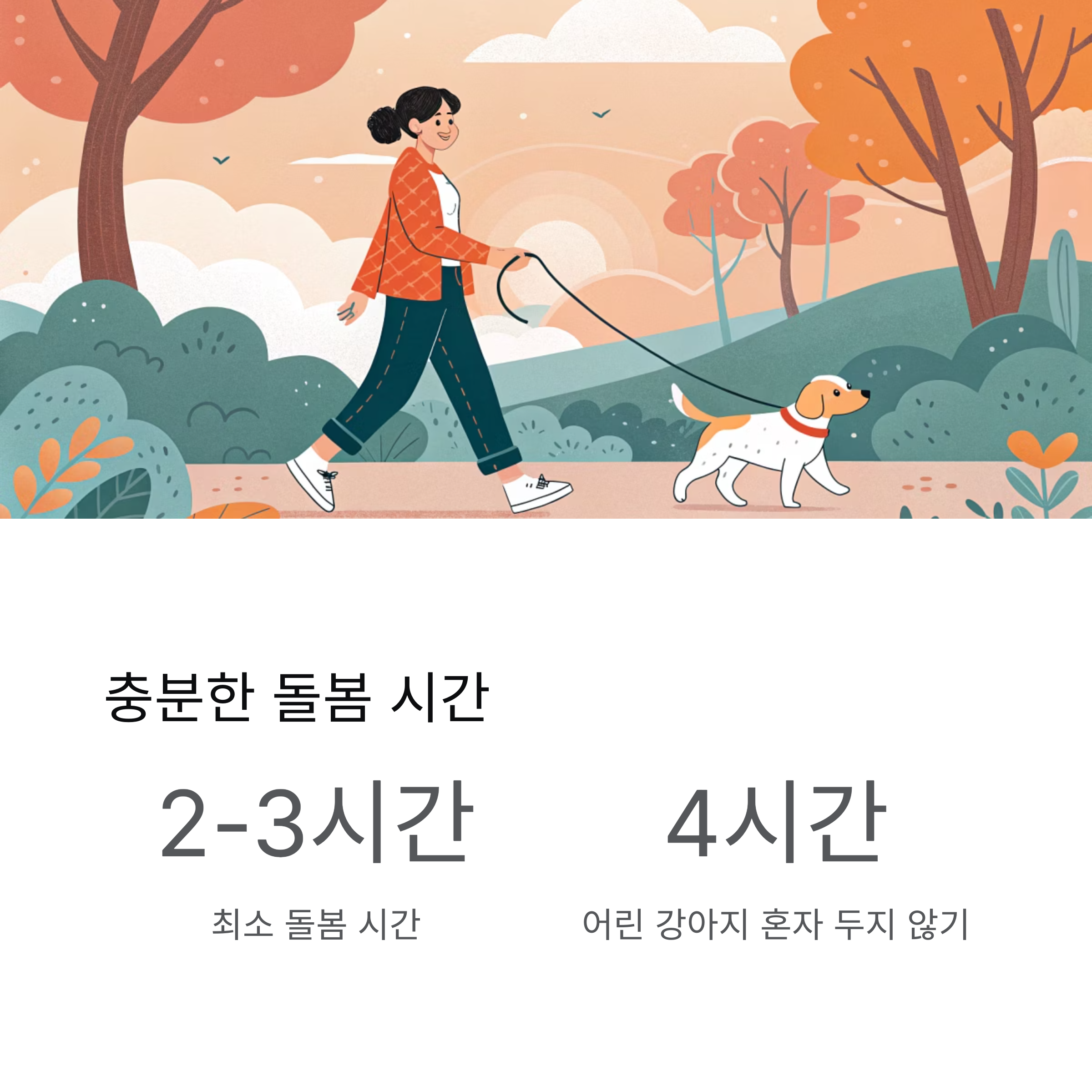 산책, 식사, 놀이, 배변 훈련 등 강아지는 많은 손길을 필요로 합니다.