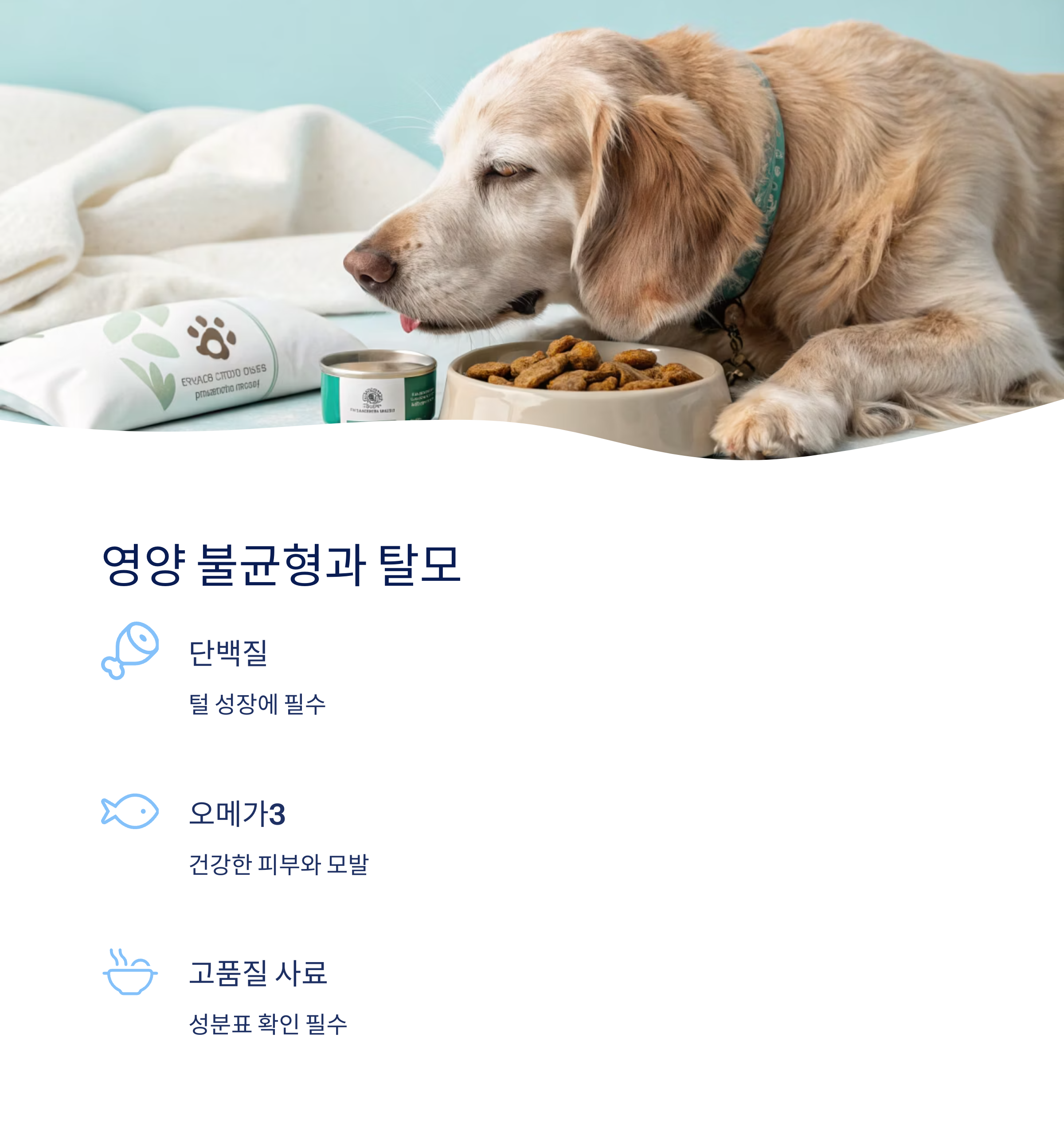 저급 사료나 특정 영양소 부족도 털 빠짐에 영향을 줍니다.