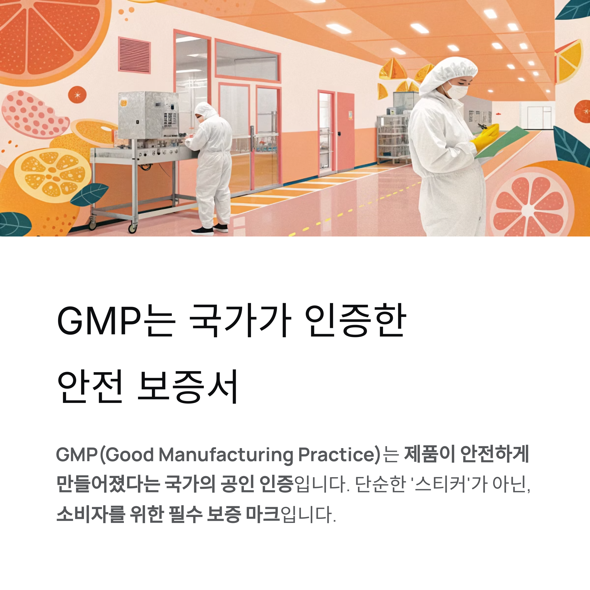 하지만 GMP(Good Manufacturing Practice) 마크는 그 제품이 안전하게 만들어졌다는 국가의 공인 인증입니다