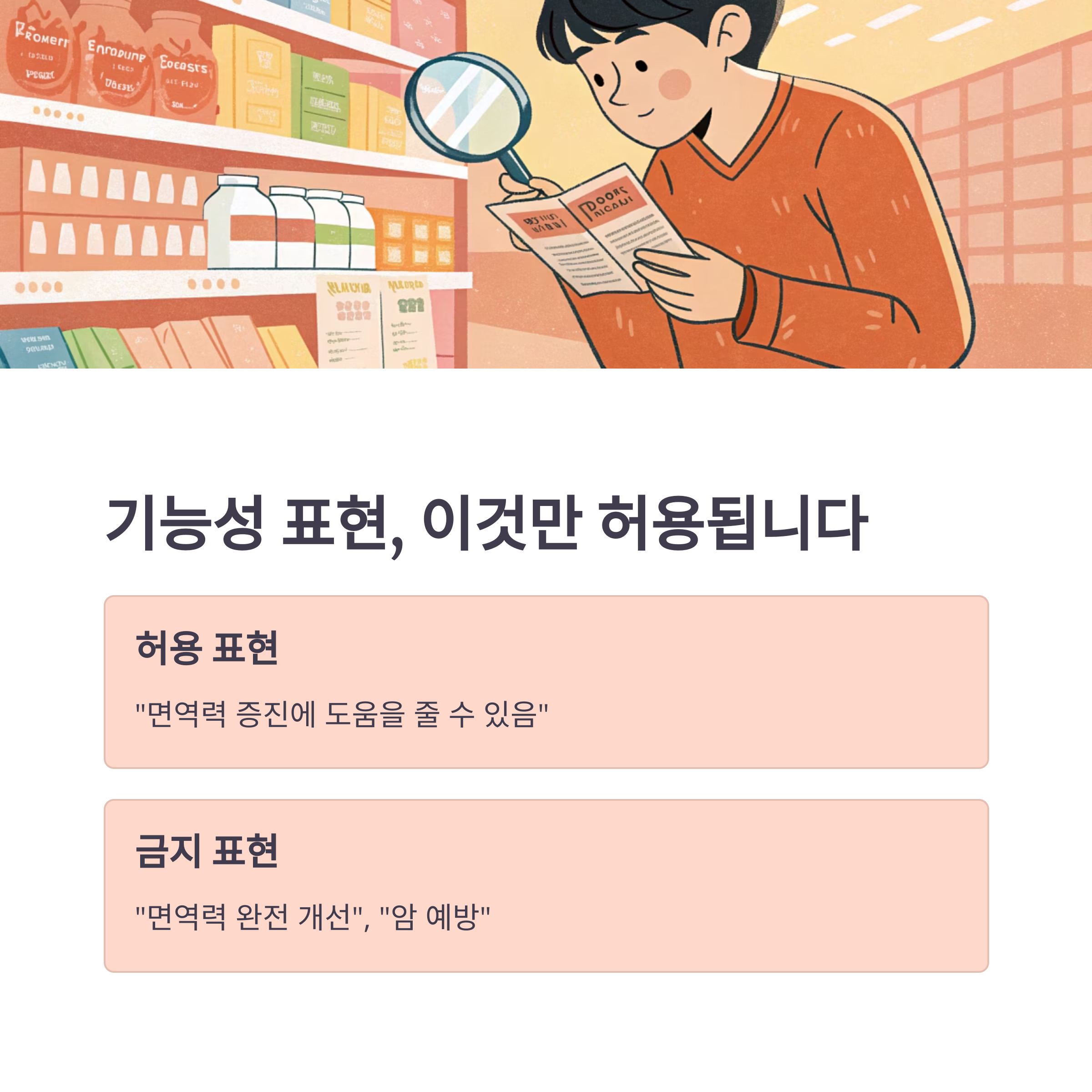 표현되며, "면역력 완전 개선"이나 "암 예방" 등은 금지되어