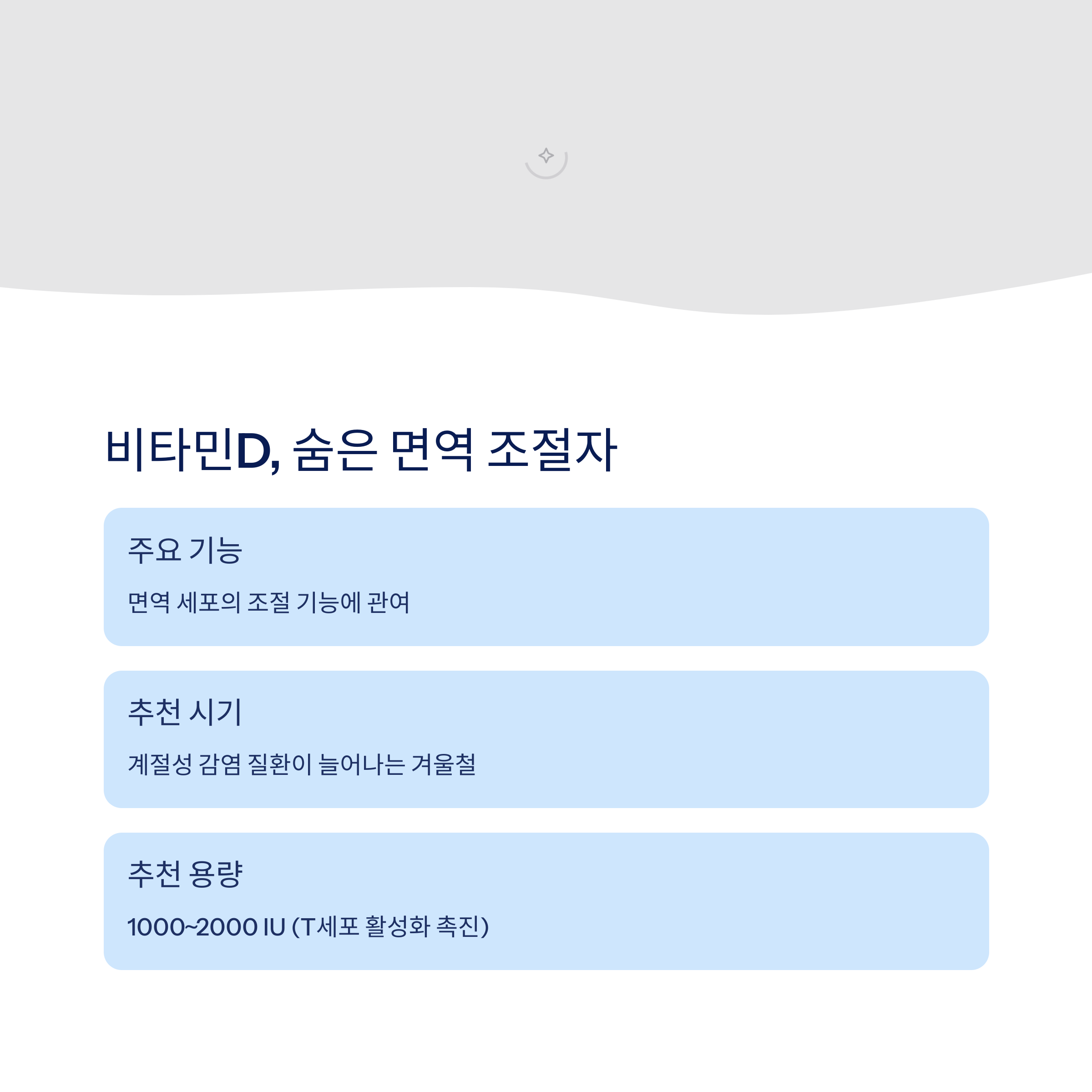 | 겨울철 | 1000~2000 IU | T세포 활성화 촉진 |