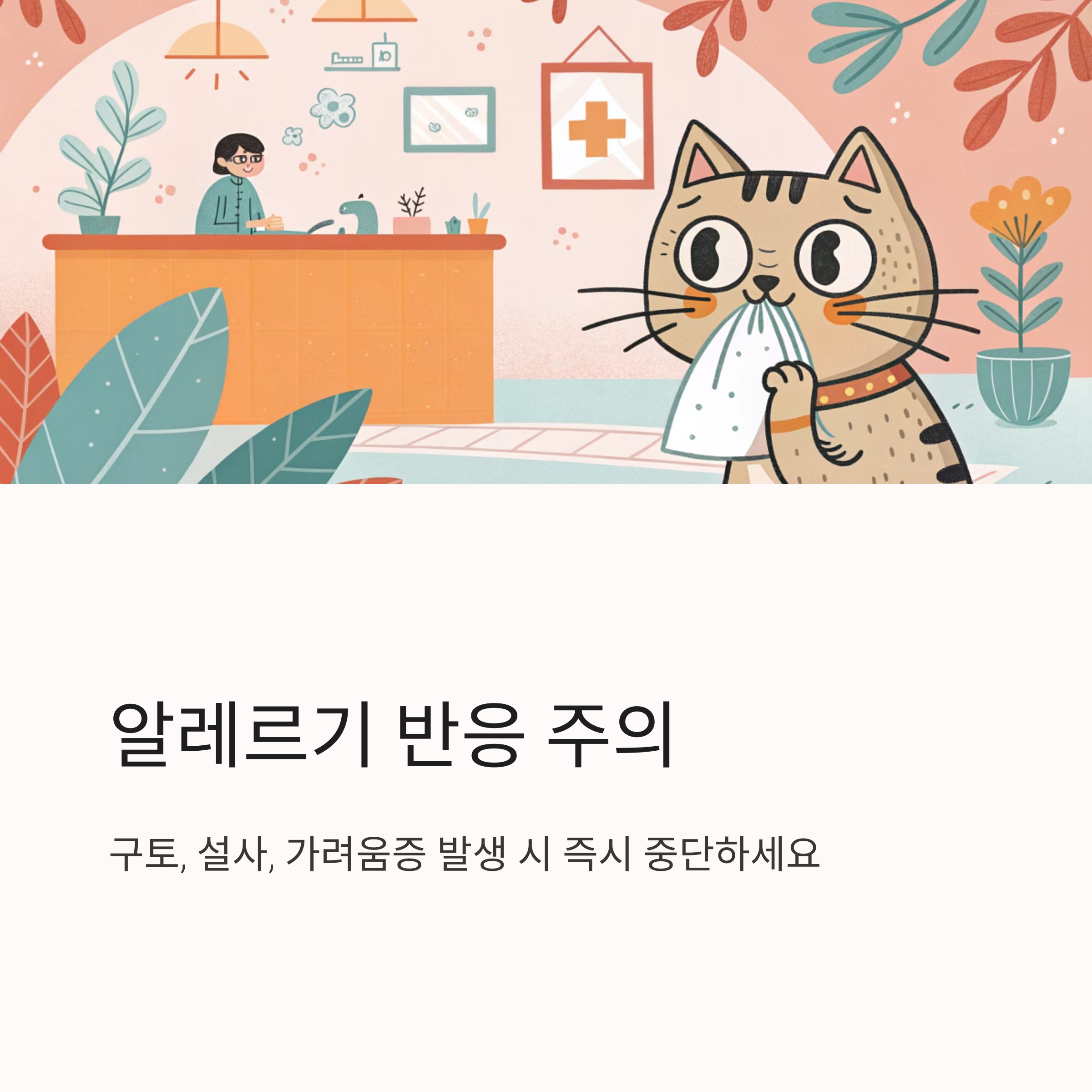 간식 급여 후 구토, 설사, 가려움, 피부 발진 등의 증상이 나타나면