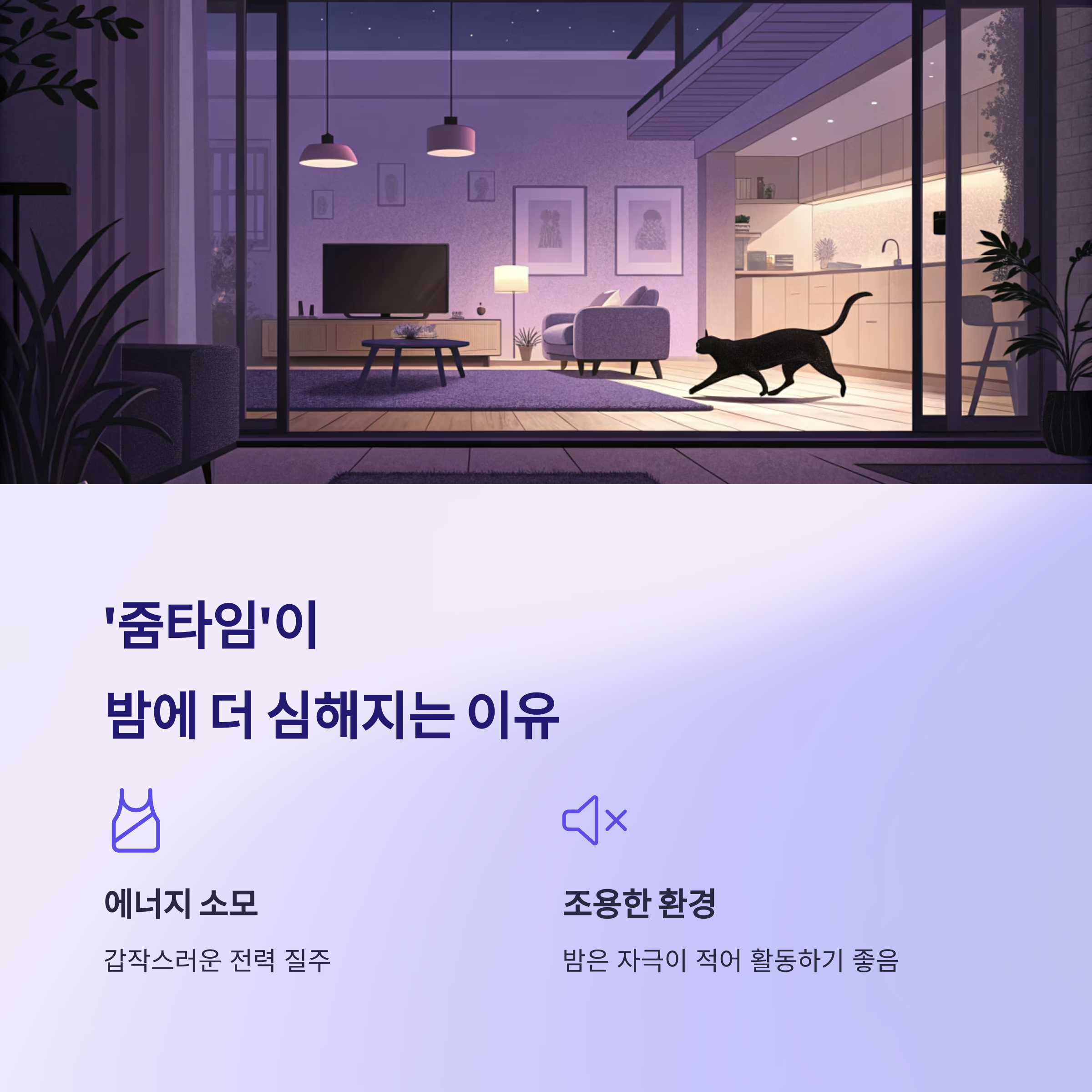 고양이 입장에서는 “지금이 움직일 시간”이라고 느끼는 경우가 많습니다.