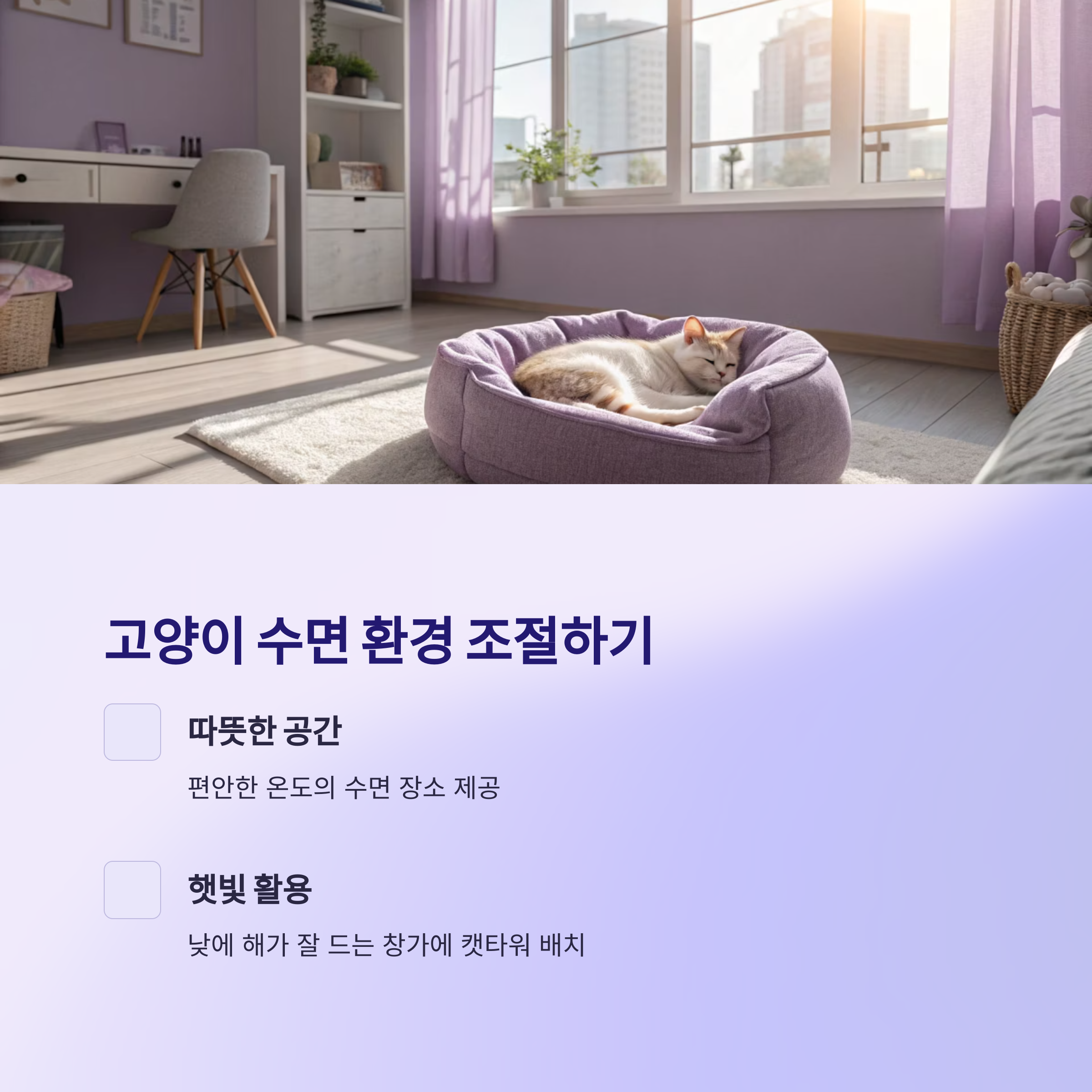 캣타워나 담요를 배치해주면 낮잠을 오래 자게 되어