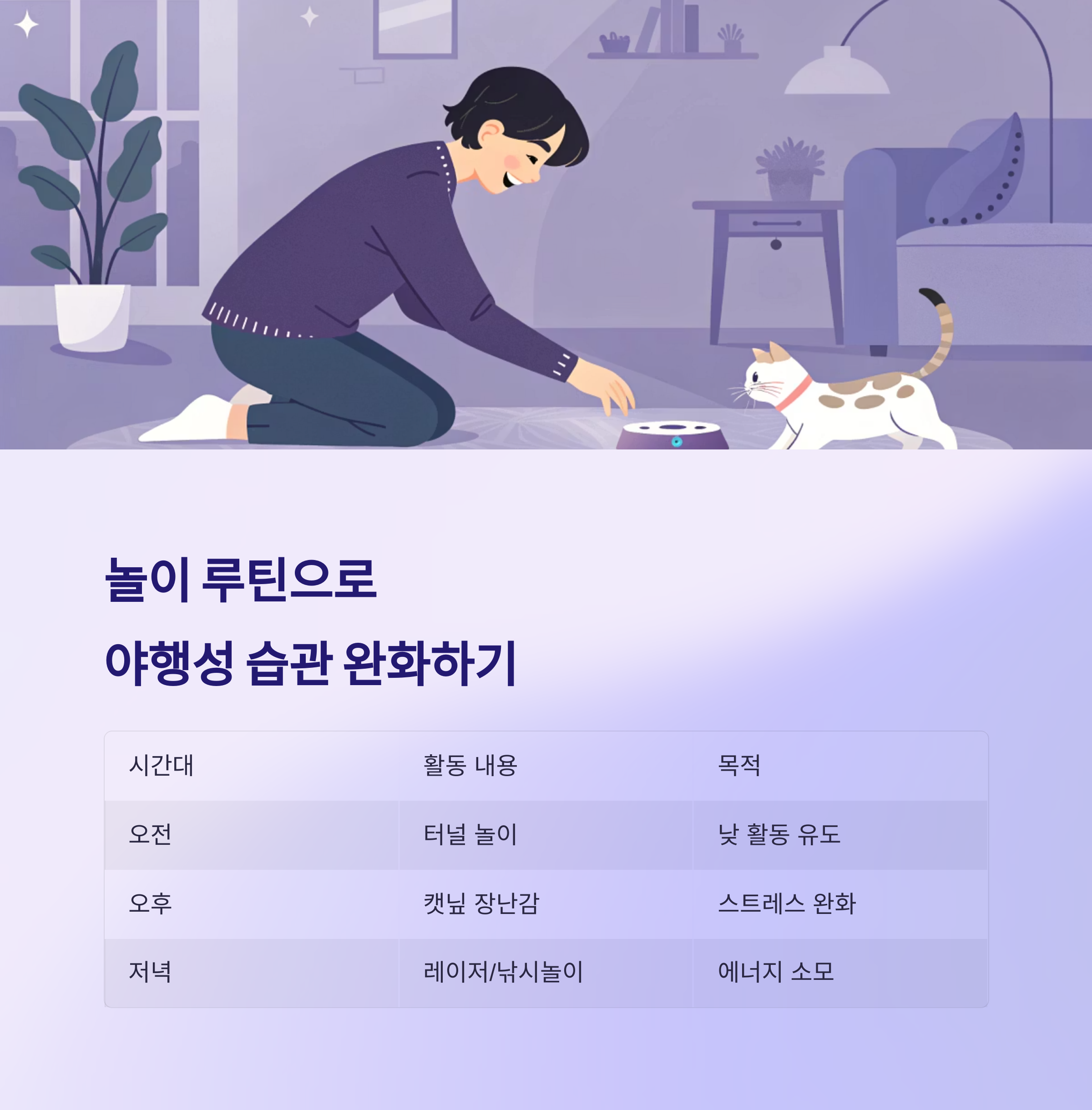 | 오후 | 캣닢 장난감 제공 | 스트레스 완화 |