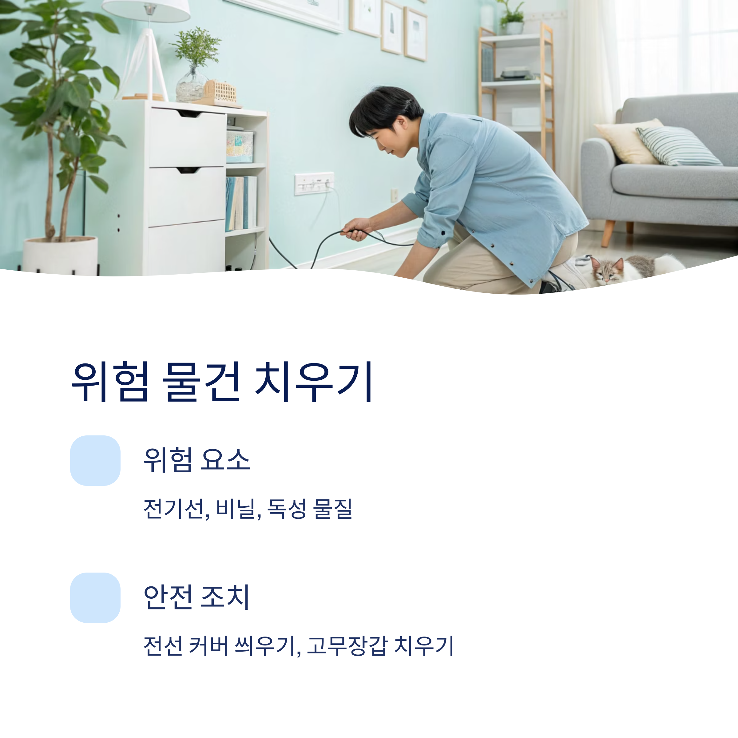 전선은 튼튼한 커버로 감싸고, 고무장갑 등은 치워두는 것이 좋습니다.