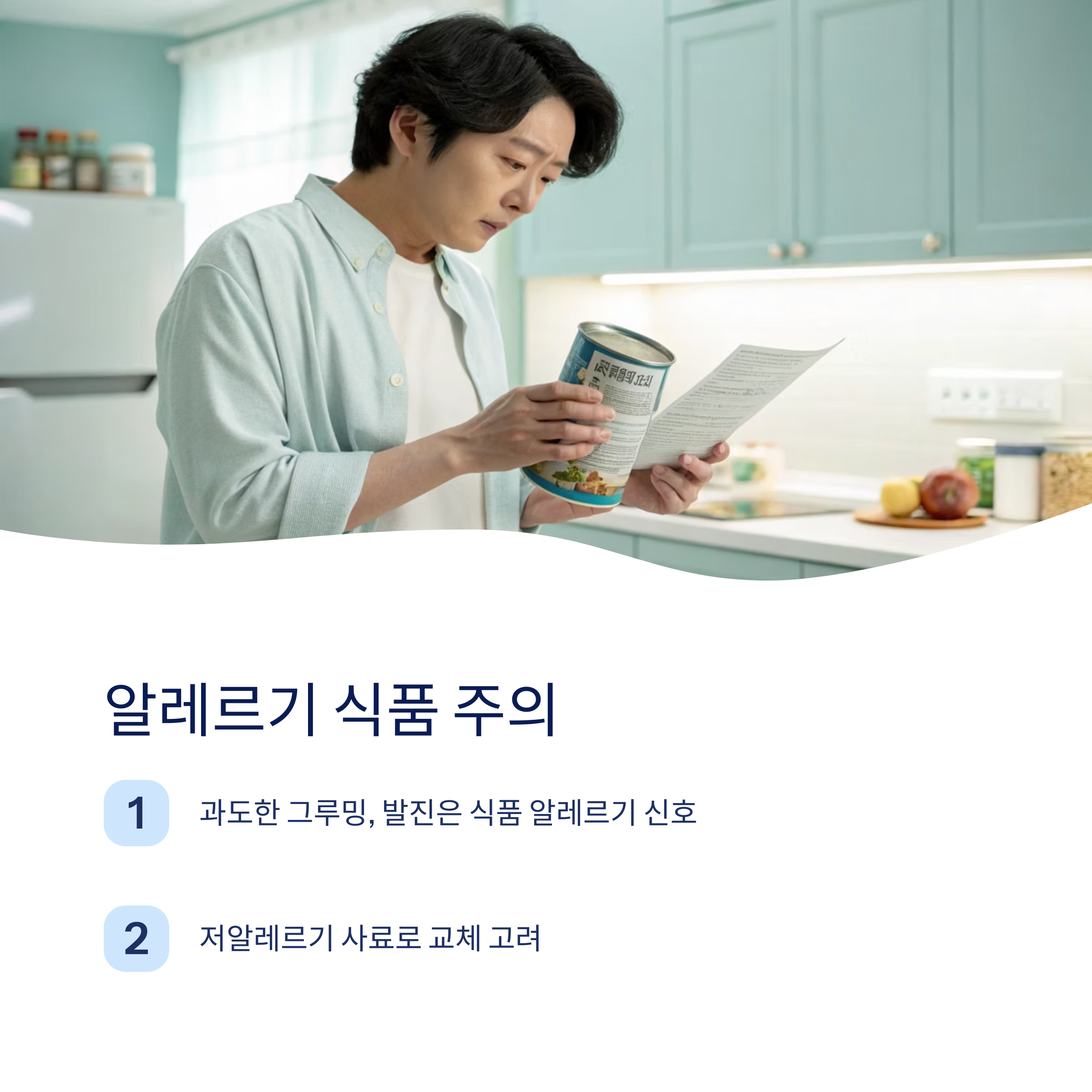 알레르기 유발 식품을 조심하고 사료를 관리하세요