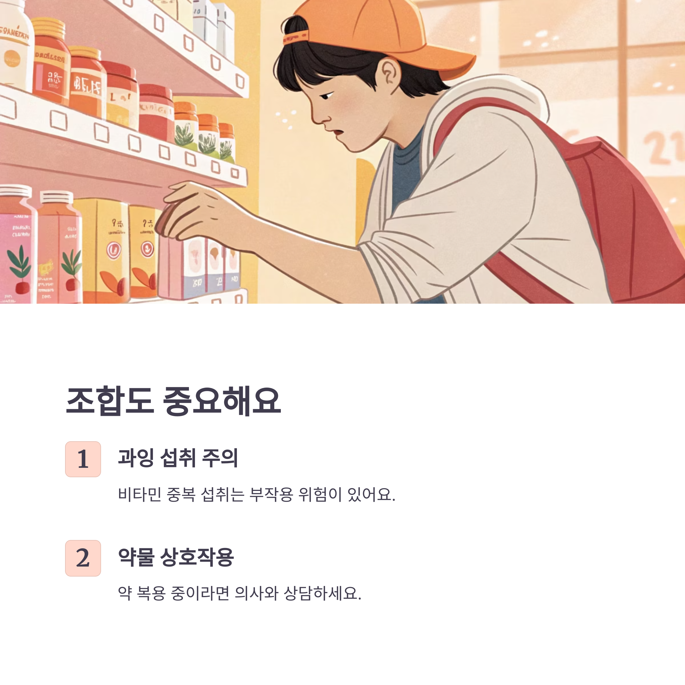 '멀티비타민 + 단일 성분 제품' 조합은 주의해서