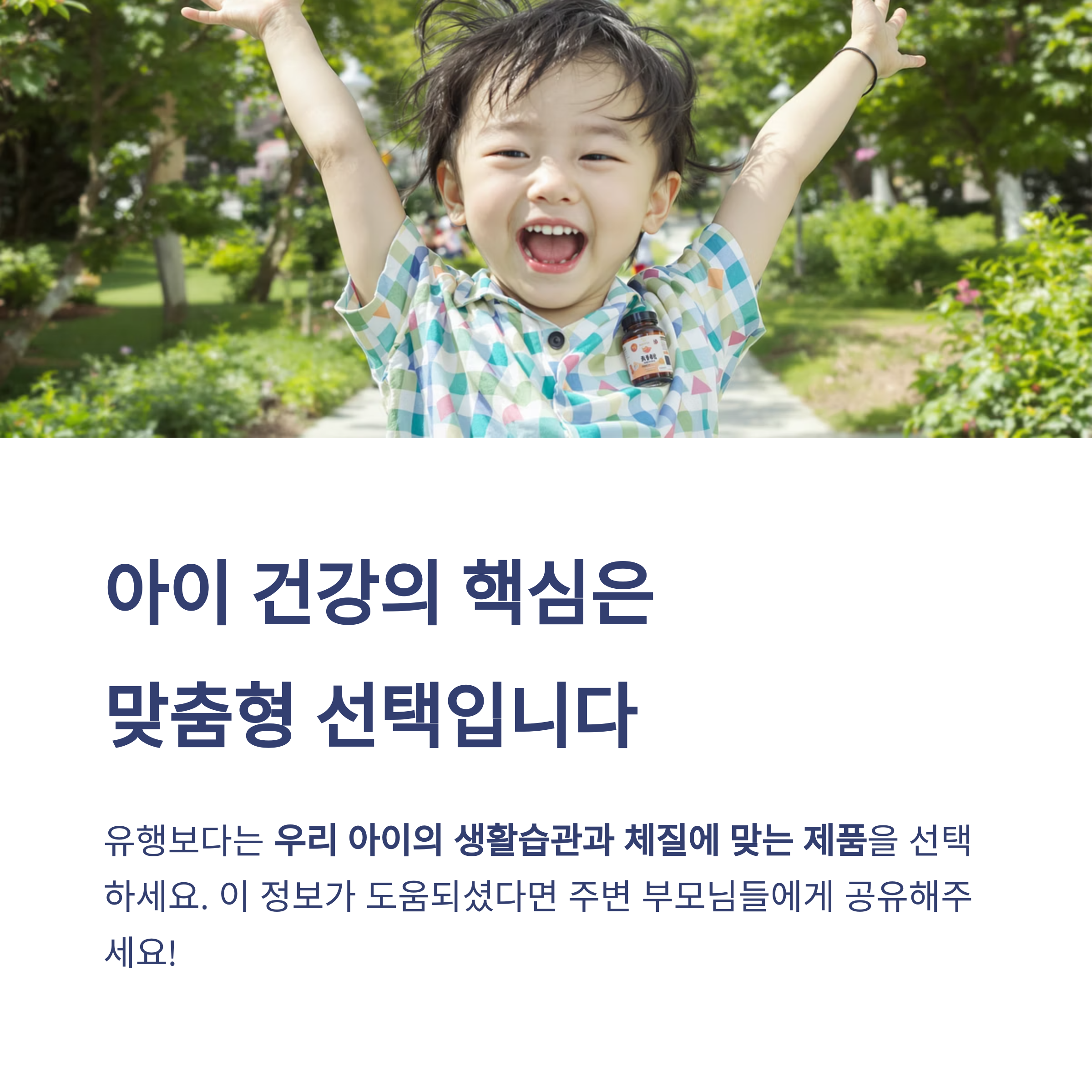 아이의 건강은 '적절한 성분 + 정확한 용량 + 꾸준한 복용'이 핵심입니다