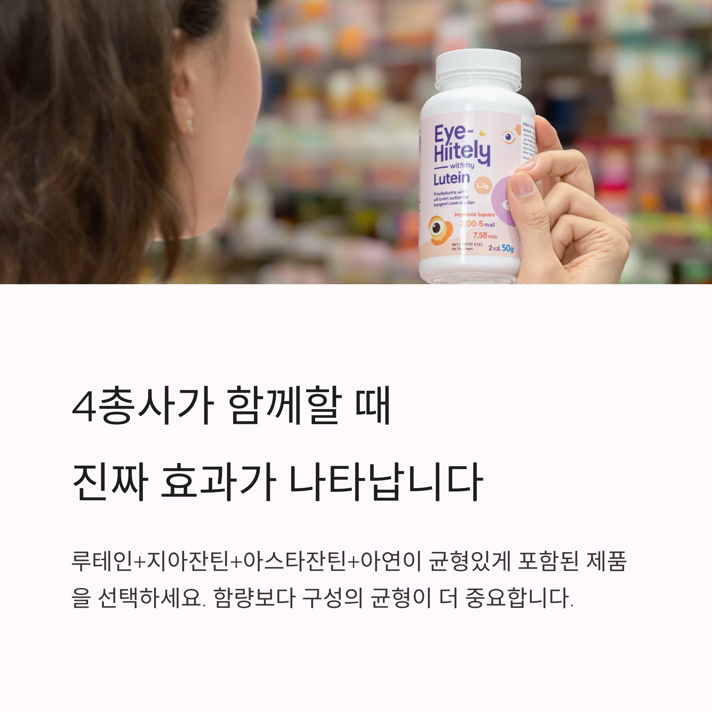 루테인은 단독보다는 복합 설계된 제품이 눈 건강에 더 효과적입니다.