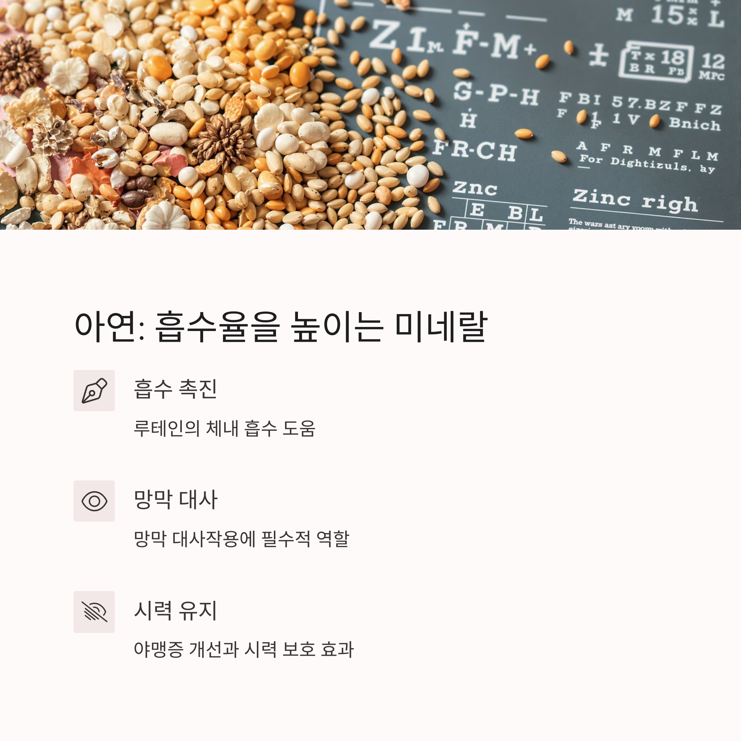 아연이 부족하면 루테인의 작용이 원활하지 않아