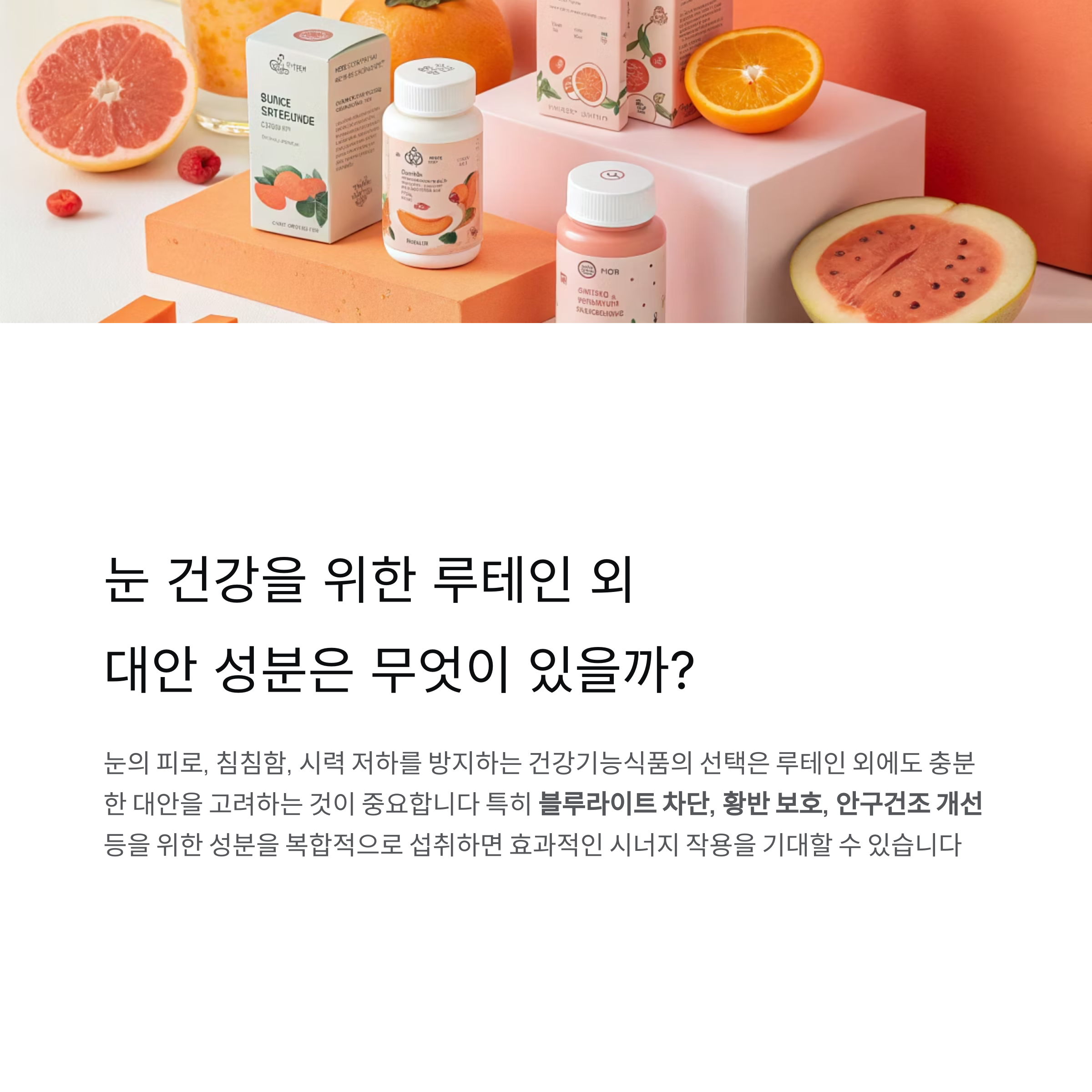 특히 블루라이트 차단, 황반 보호, 안구건조 개선 등을 위한 성분을