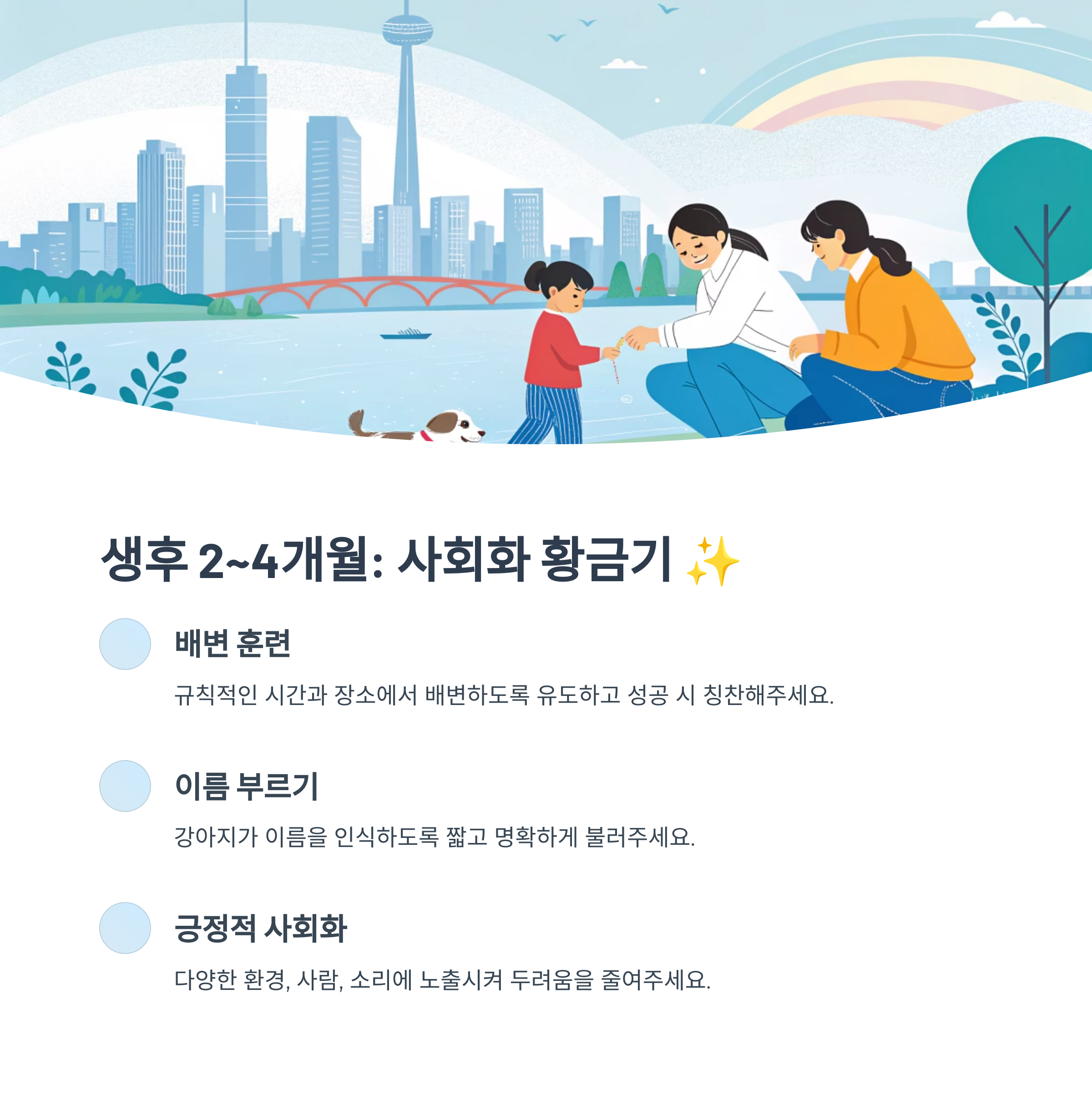 생후 2~4개월: 사회화 황금기 & 기본 예절 훈련