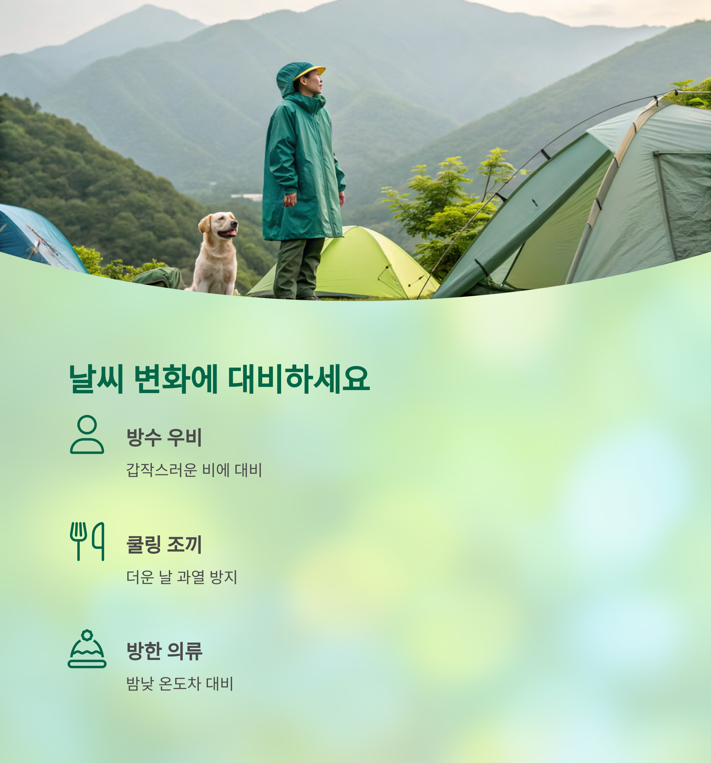 캠핑장은 일교차가 크고, 기상 변화도 갑작스럽게 일어납니다.