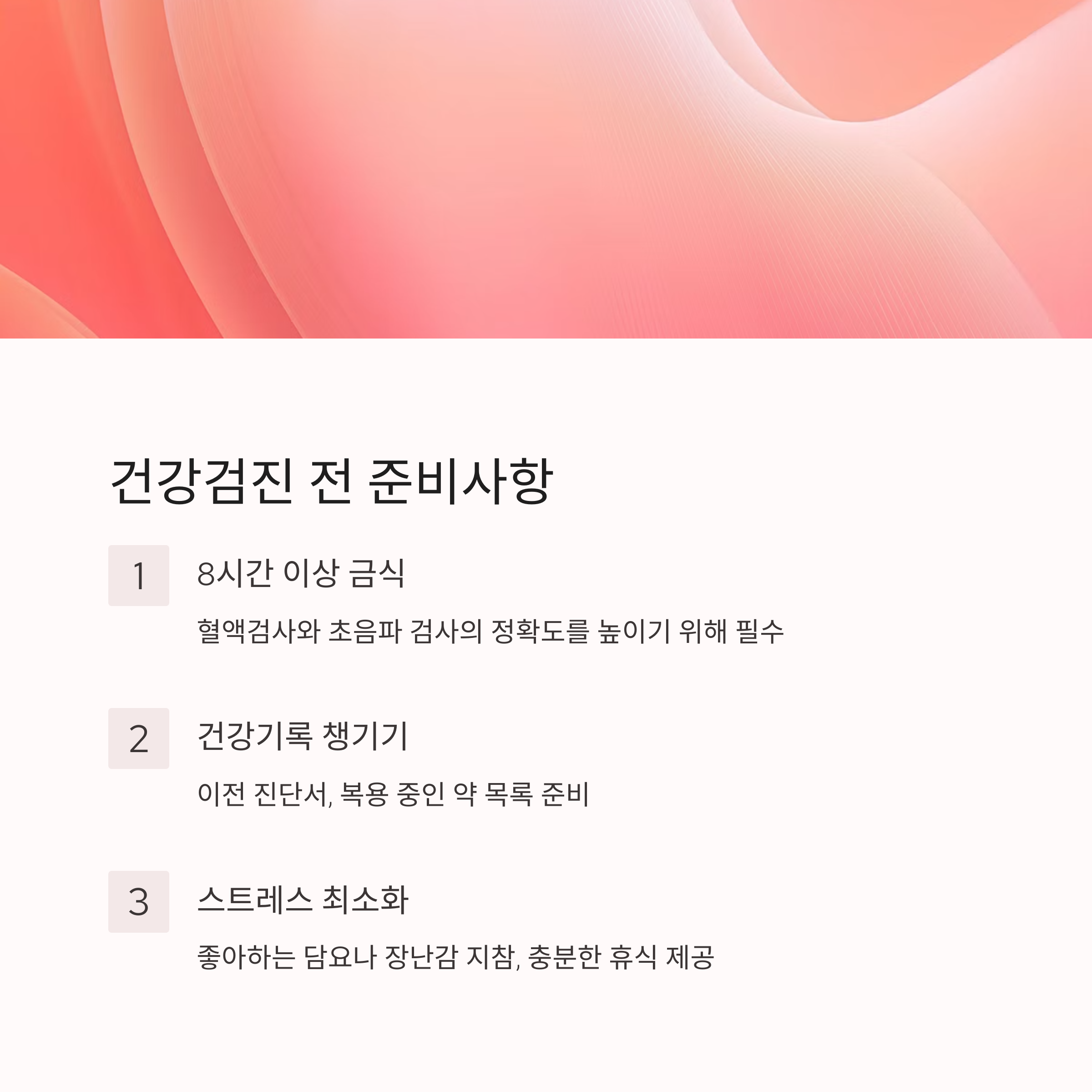 검진 전에 어떤 준비가 필요한지도 미리 숙지하는 것이 좋습니다.