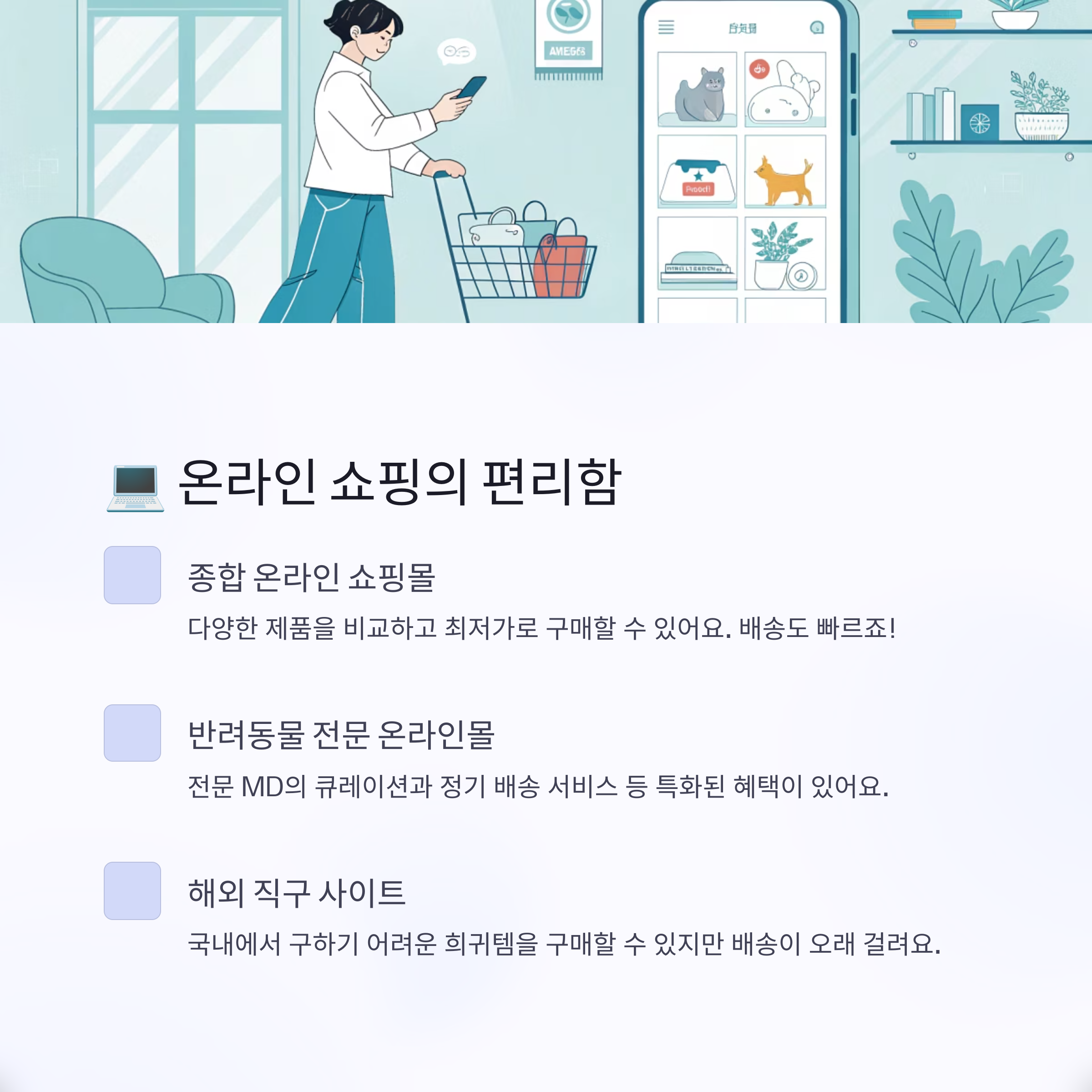 - 해외 직구 사이트: 국내에서 구하기 어려운 희귀템이나 특정 브랜드 제품을 저렴하게 구매할 때 유용해요. 다만, 배송 기간이 길고 교환/환불이 어렵다는 점, 그리고 반려동물 사료/간식은 검역 문제로 제한될 수 있다는 점을 꼭 확인해야 해요.