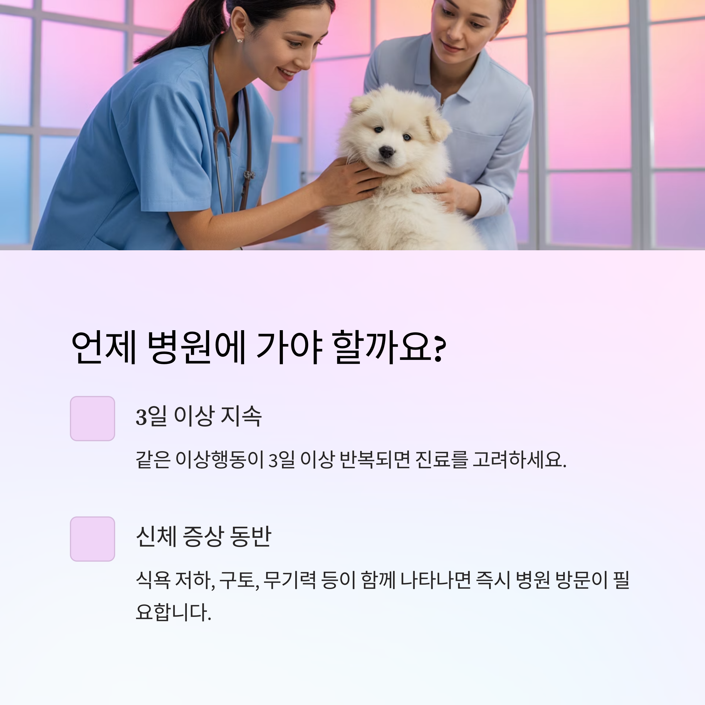 3일 이상 같은 행동이 지속될 경우 병원 진료를 고려해보는 것이 좋습니다.