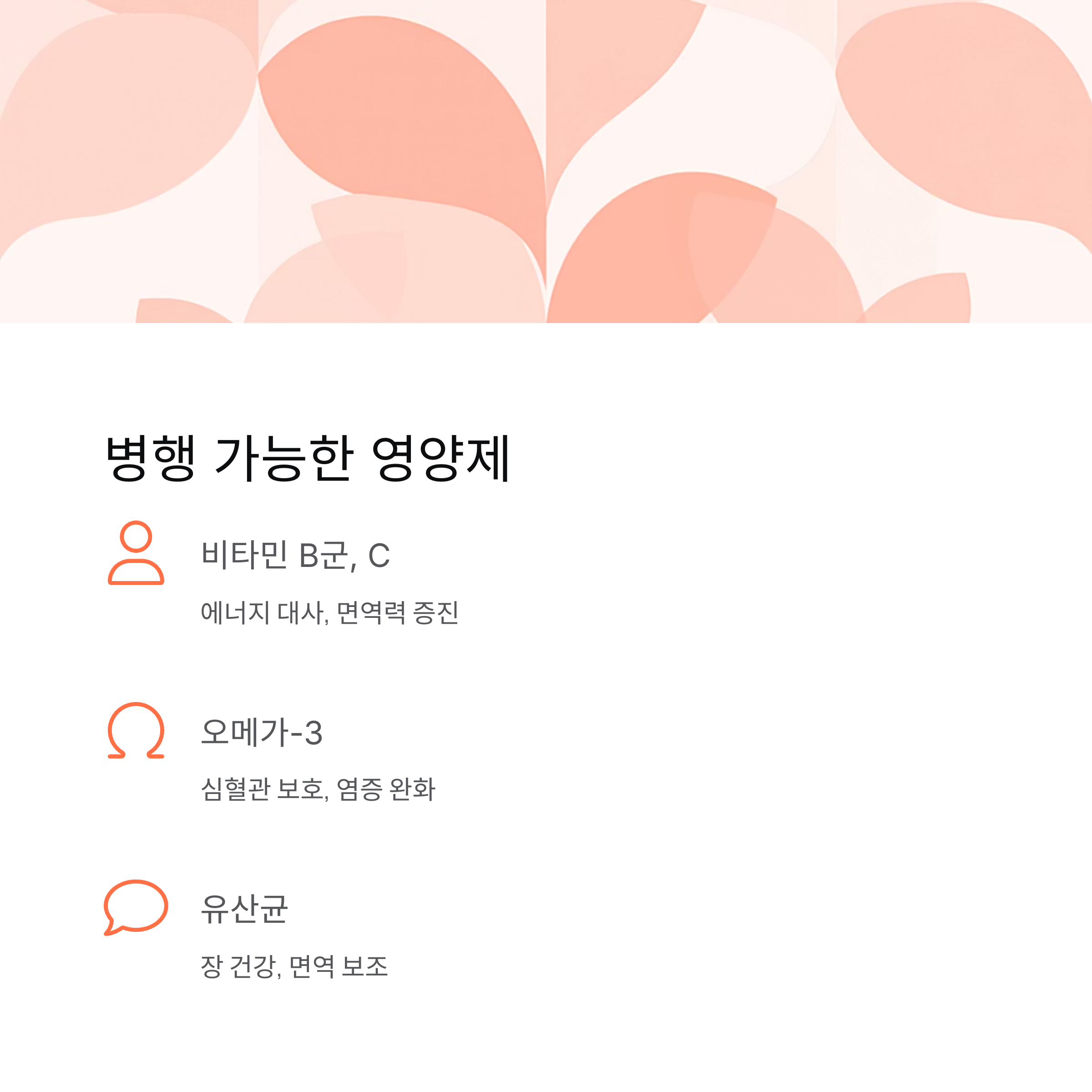 대부분의 경우 아래 성분들은 의사와 상의 후 병행 복용이 가능합니다.