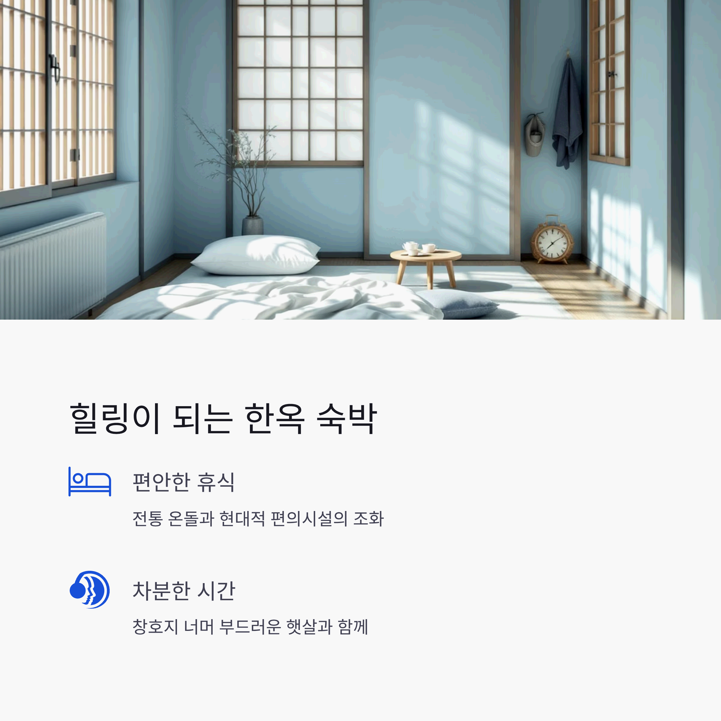 지금까지 해외 MZ세대에게 사랑받는 한옥 스테이 BEST 5를 함께 둘러봤어요. 한옥에서의 하룻밤은 단순히 잠을 자는 것을 넘어, 한국의 라이프스타일을 직접 경험하고 오래도록 기억에 남을 추억을 만드는 시간이 될 거예요.