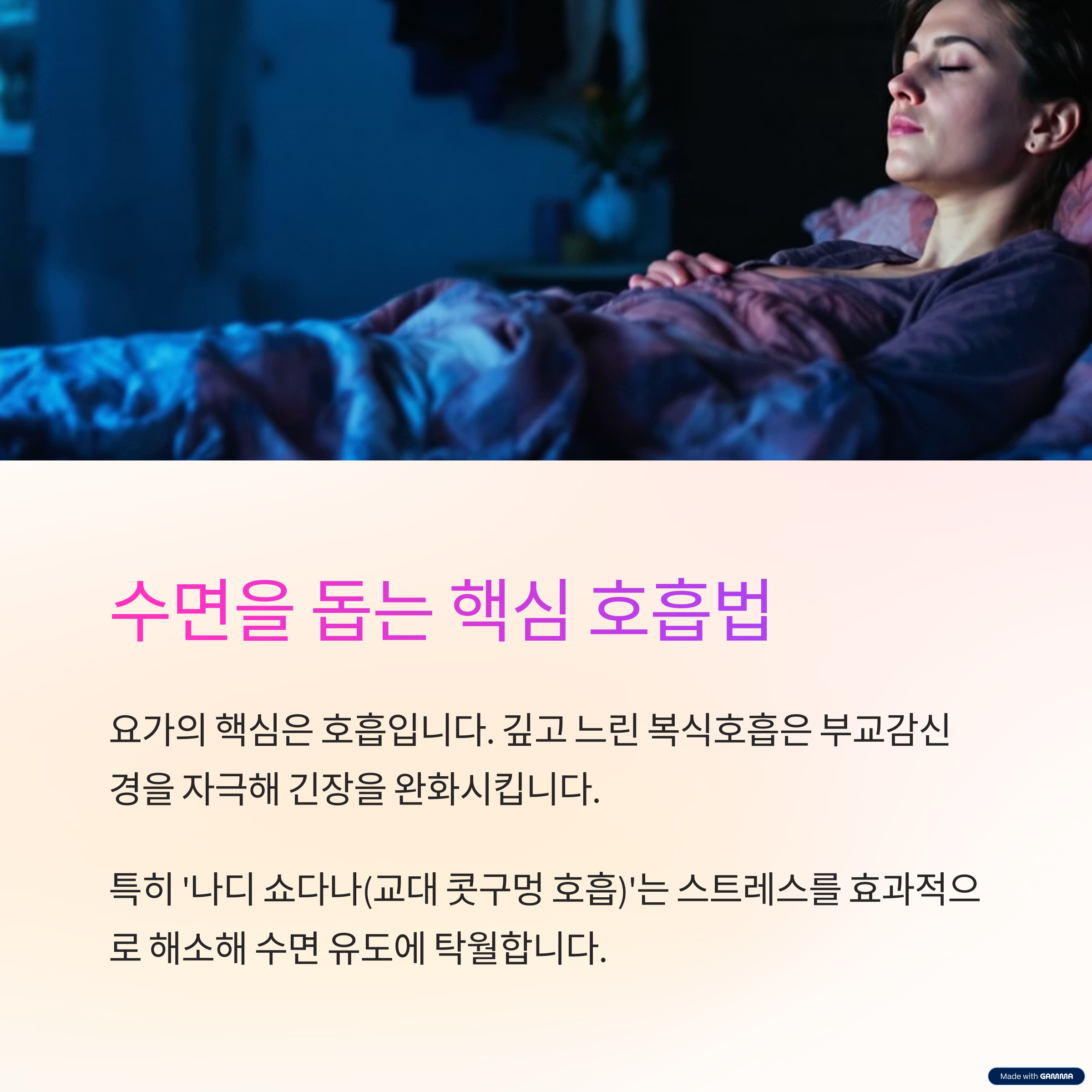 과학 기반 수면 요가를 오늘부터 실천해 보시기 바랍니다.