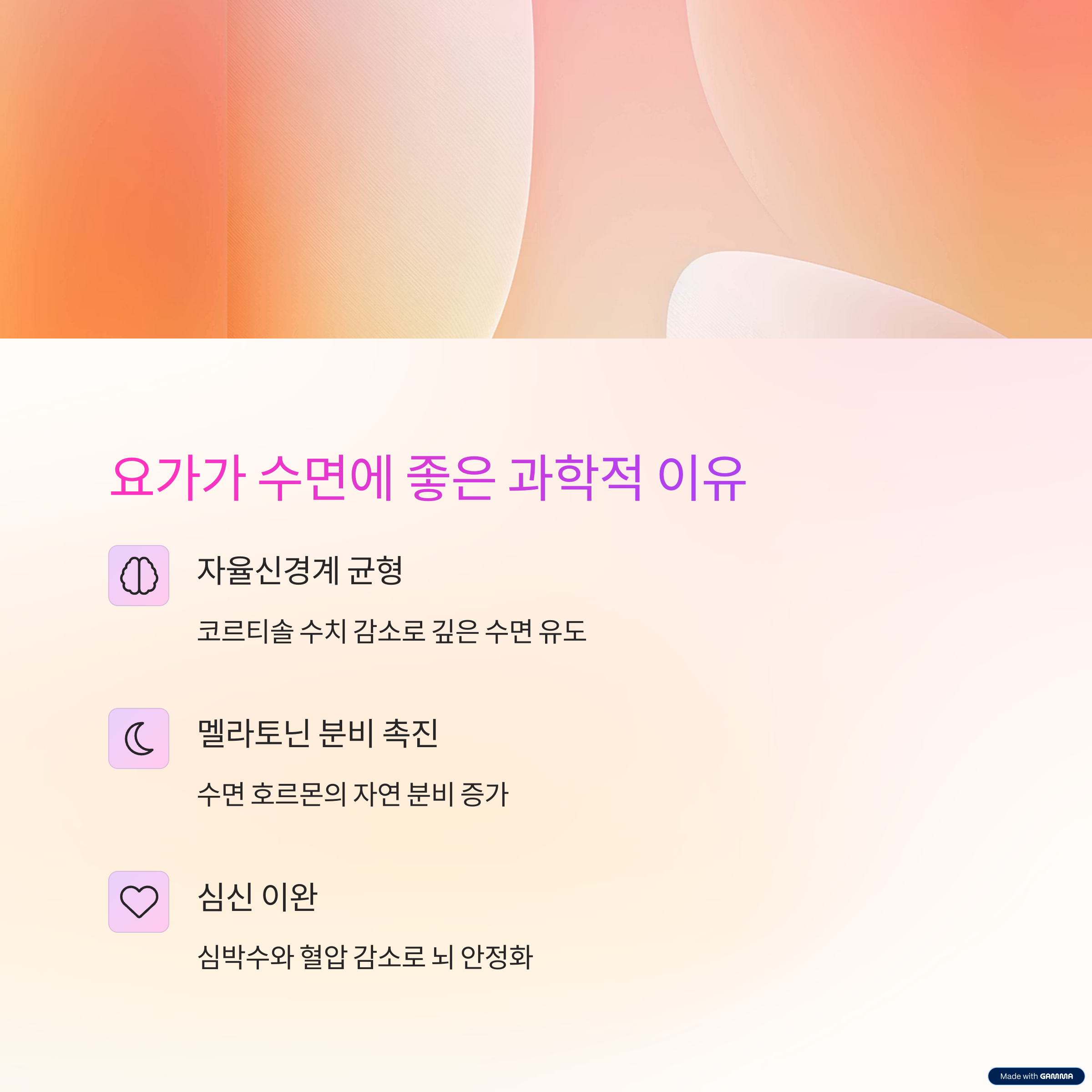 요가는 단순한 스트레칭을 넘어서 수면 개선에 직접적인 과학적 영향을 주는 활동입니다.