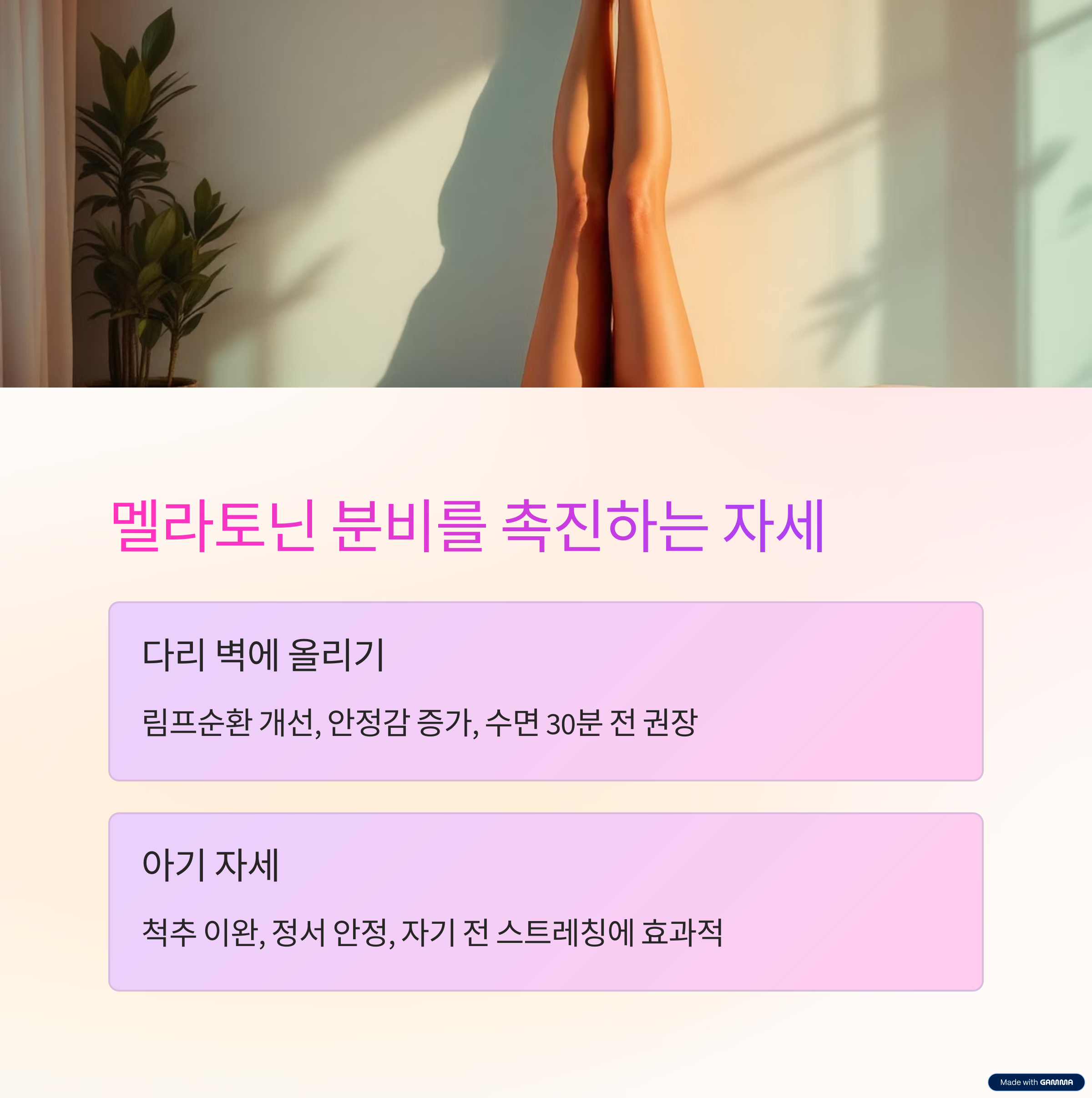 연구에 따르면 일부 요가 자세는 수면 호르몬인 멜라토닌의 자연 분비를 촉진합니다.