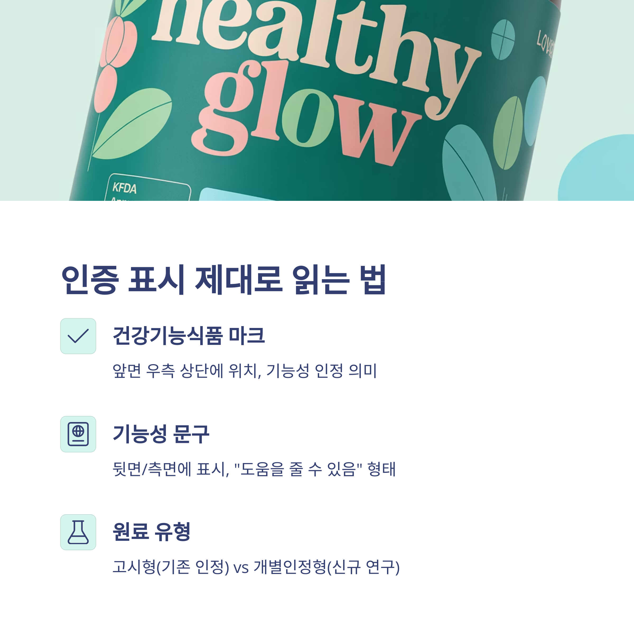 즉, 단순한 건강식품이 아닌 "기능성을 인정받은 제품"만이 식약처 인증 마크를 받을 수 있습니다.