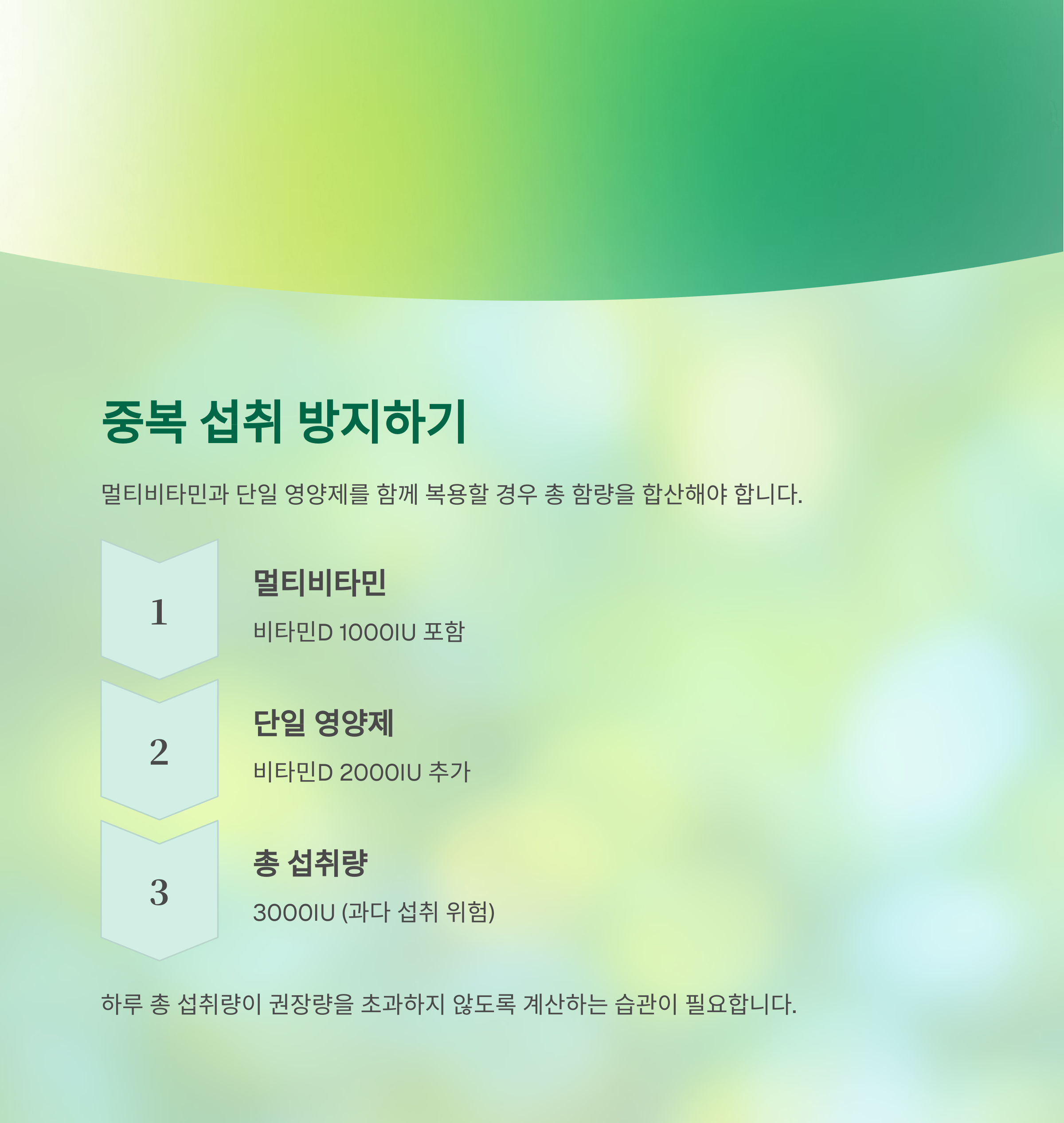 추가로 비타민D 2000IU 제품을 복용하면 과다 섭취가 됩니다.