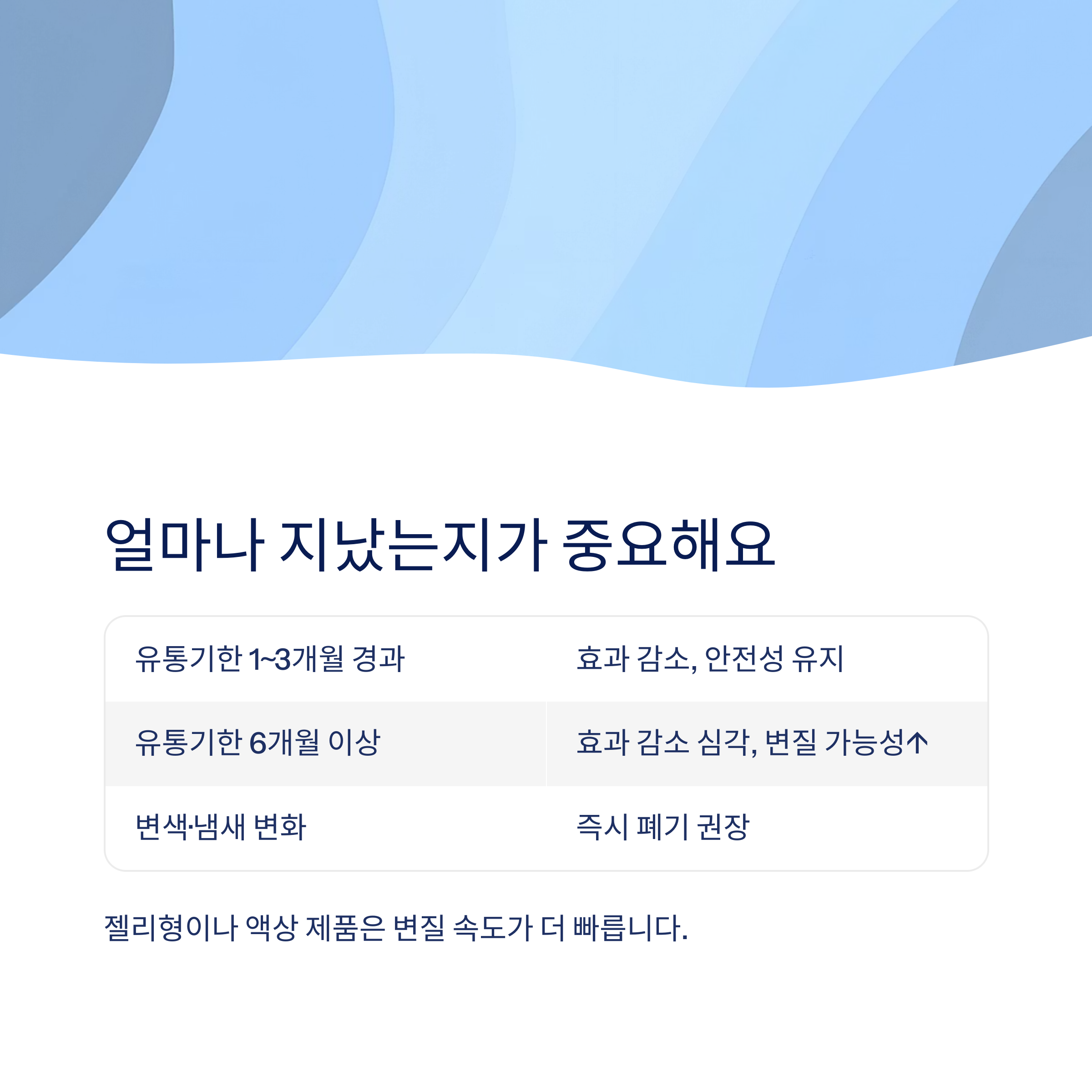 특히 젤리형이나 액상 제품은 변질 속도가 더 빠릅니다