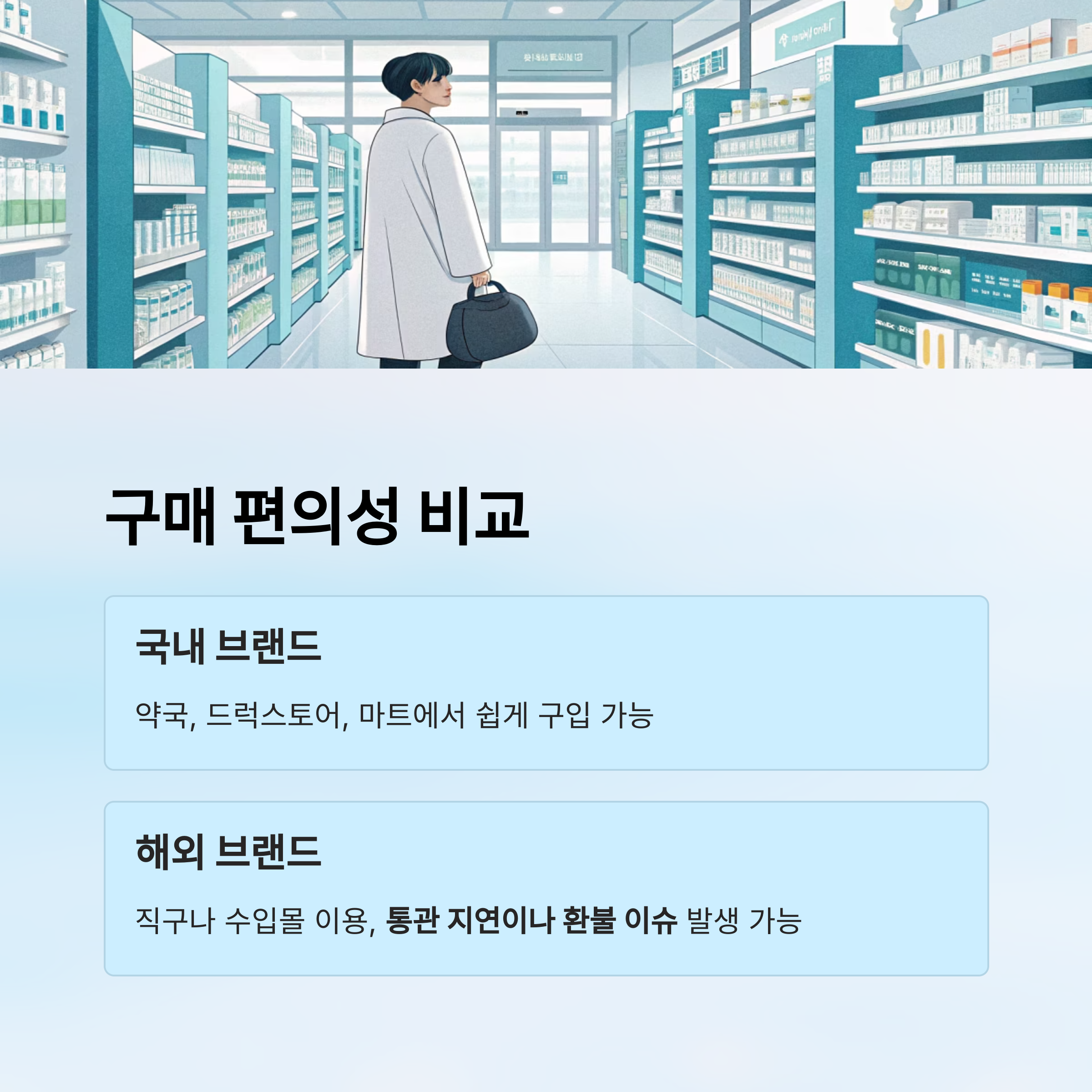국내 브랜드는 약국과 드럭스토어, 마트에서 쉽게 구입할 수 있으며