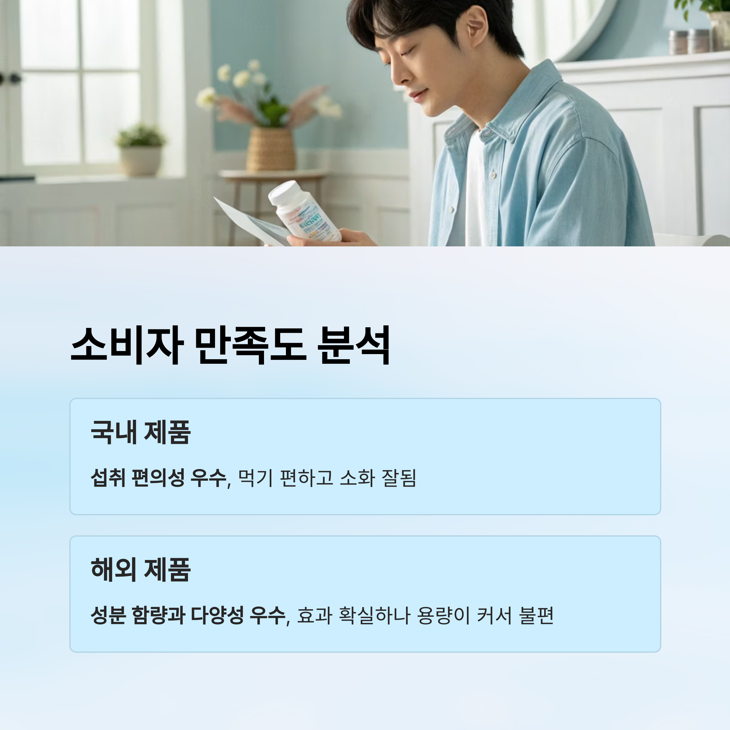 | 단점 | 성분 다양성 한계 | 가격 변동, 섭취 불편, 통관 문제 |