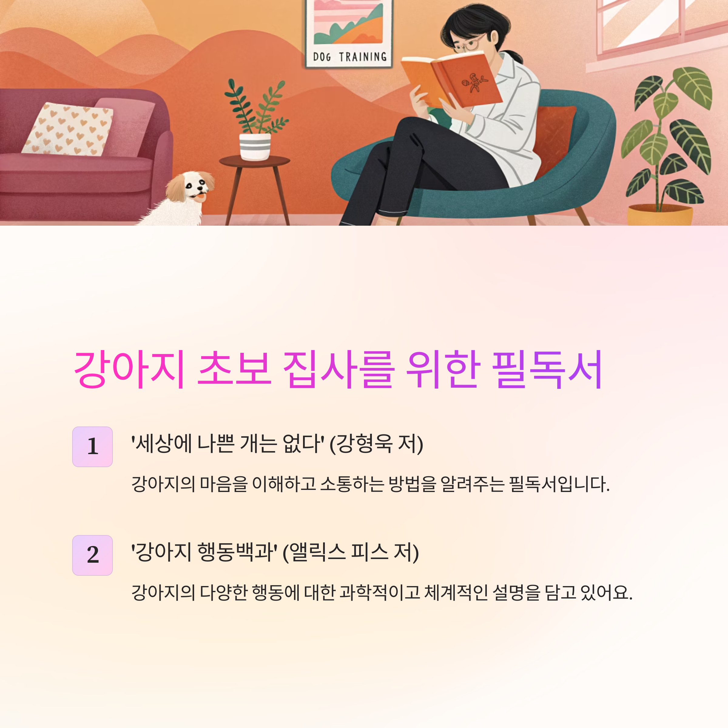 강아지는 우리에게 무한한 사랑과 기쁨을 주지만, 그만큼 책임감과 지식도 필요해요. 기본적인 훈련부터 건강 관리까지, 똑똑한 강아지 집사가 되기 위한 책들을 살펴볼까요?