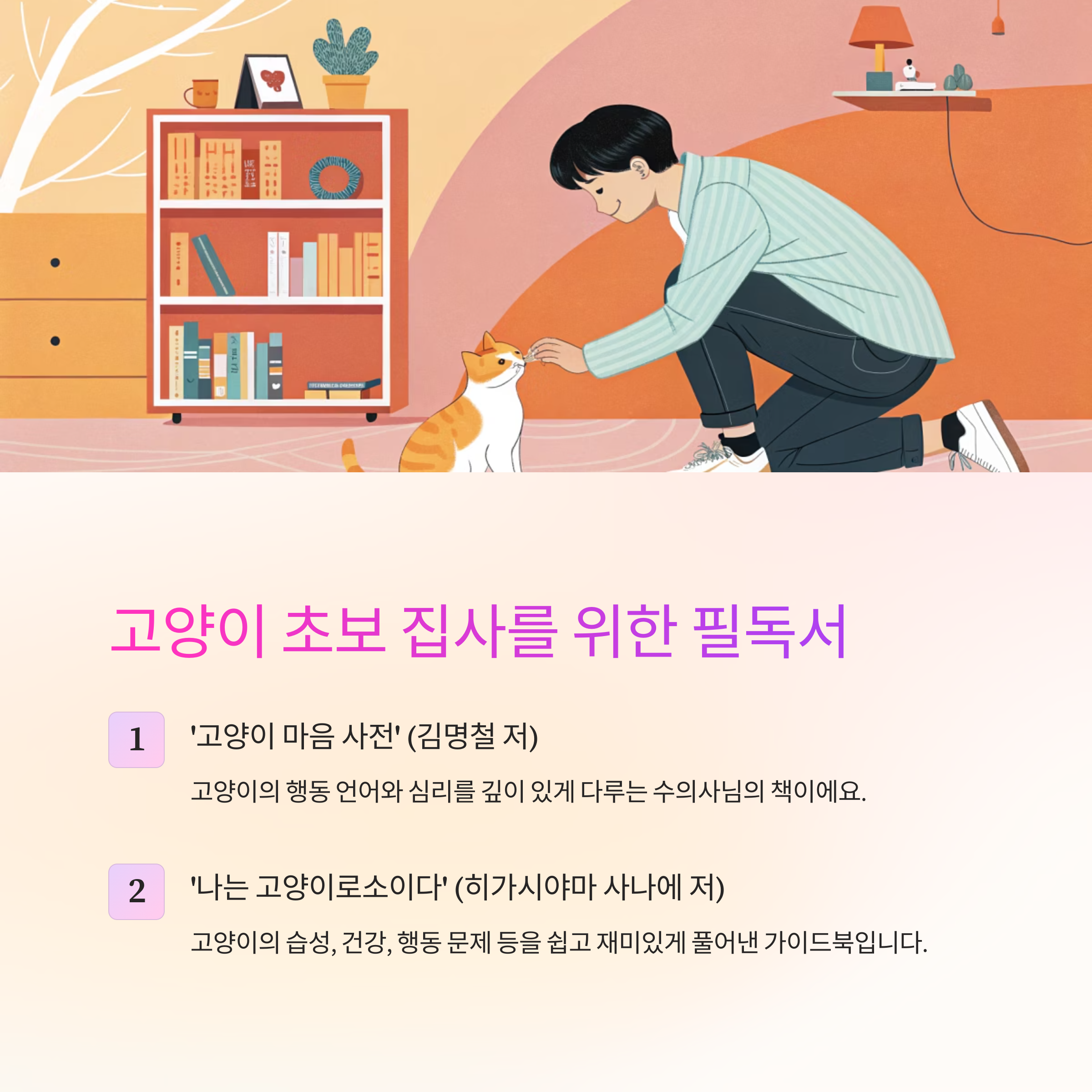 안녕 여러분! 혹시 최근에 강아지나 고양이를 입양해서 새로운 가족이 되셨나요? 아니면 곧 새로운 생명을 맞이할 준비를 하고 계신가요? 와, 정말 축하드려요! 저도 처음 반려동물을 키웠을 때, '뭘 어떻게 해야 하지?', '내가 잘 키울 수 있을까?' 하는 막막함과 동시에 엄청난 설렘이 있었던 것 같아요. 솔직히 말해서, 아무것도 모른 채로 시작하니 시행착오가 정말 많았어요. 그래서 오늘은 저처럼 반려동물과의 행복한 동거를 꿈꾸는 초보 집사님들을 위해, '이 책은 진짜 읽어봐야 해!'라고 강력 추천하고 싶은 가이드북들을 소개해 드릴게요!