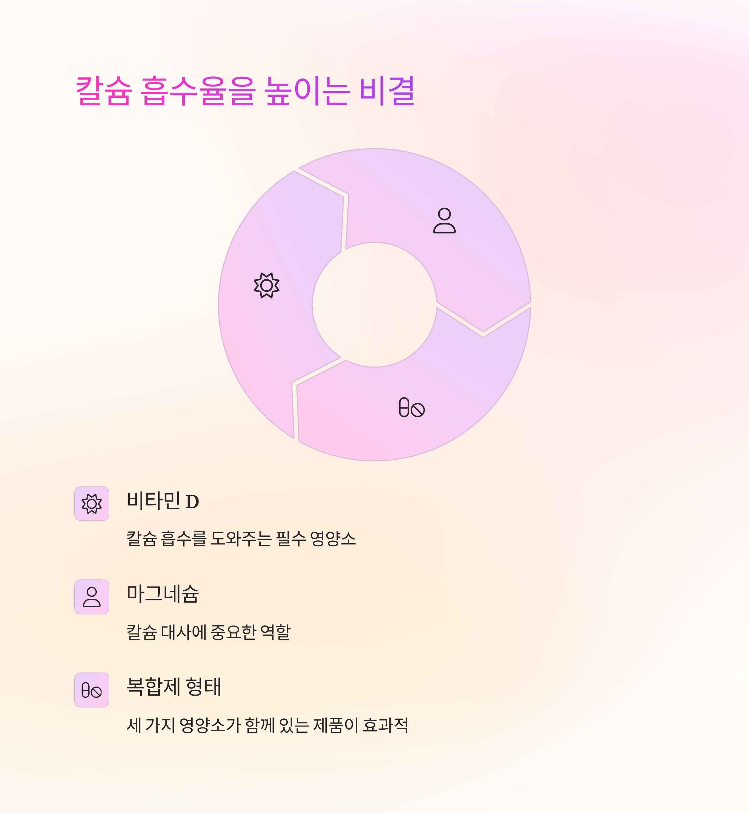 흡수율을 높이려면 비타민 D와의 조합이 필수입니다