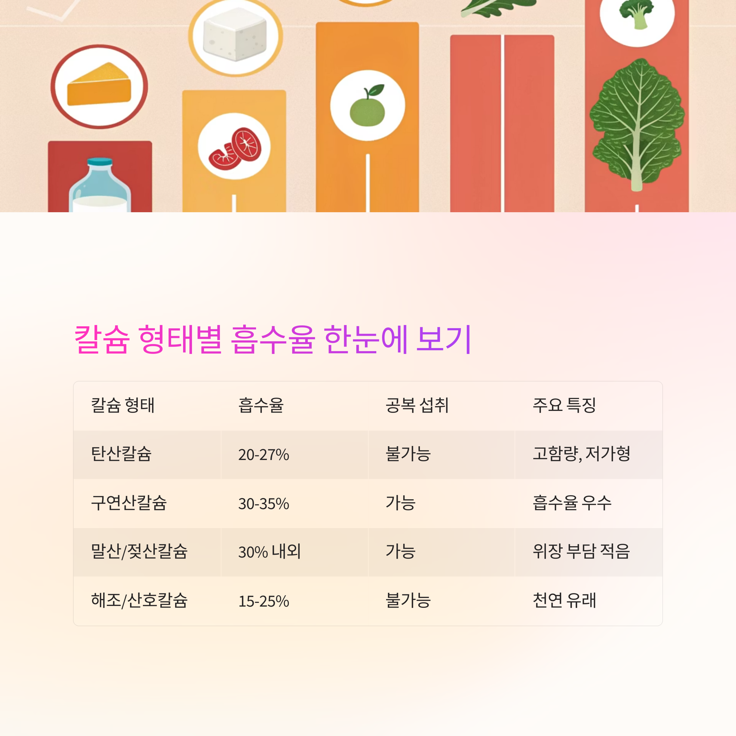 이 글에서는 대표적인 칼슘 형태별 흡수율 비교와
