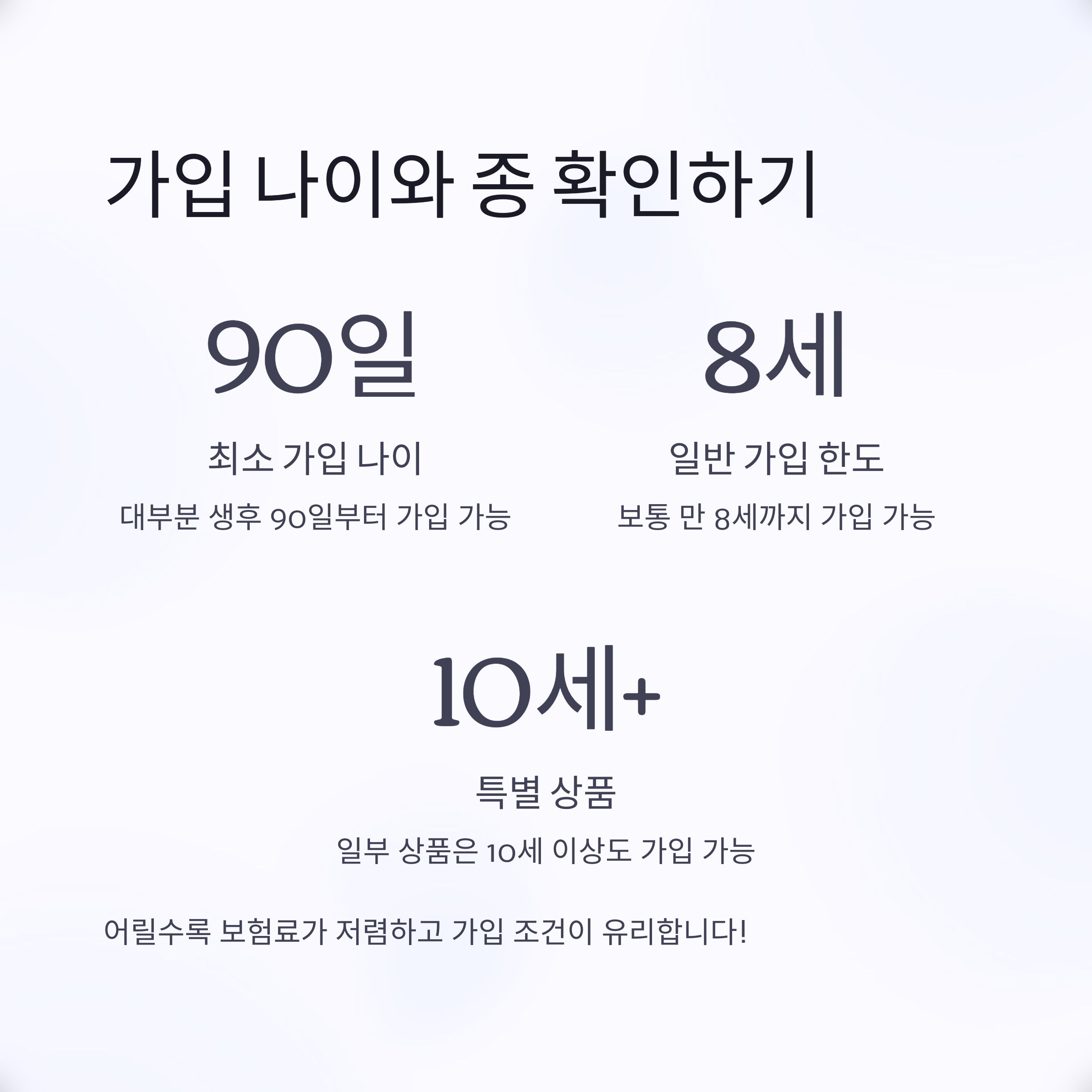 1. 가입 가능한 '나이'와 '종' 확인하기
