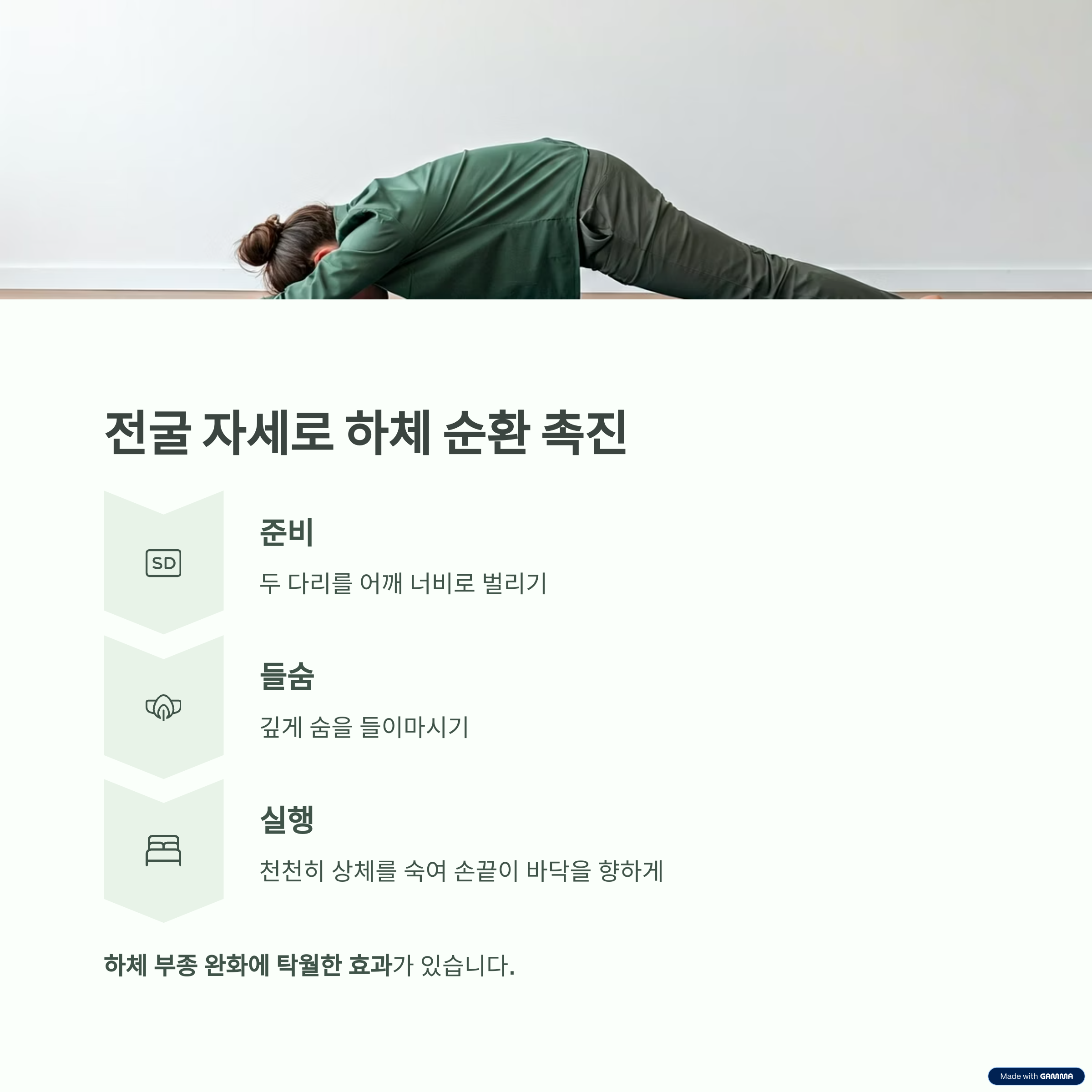 하체 순환 촉진을 위한 전굴 자세
