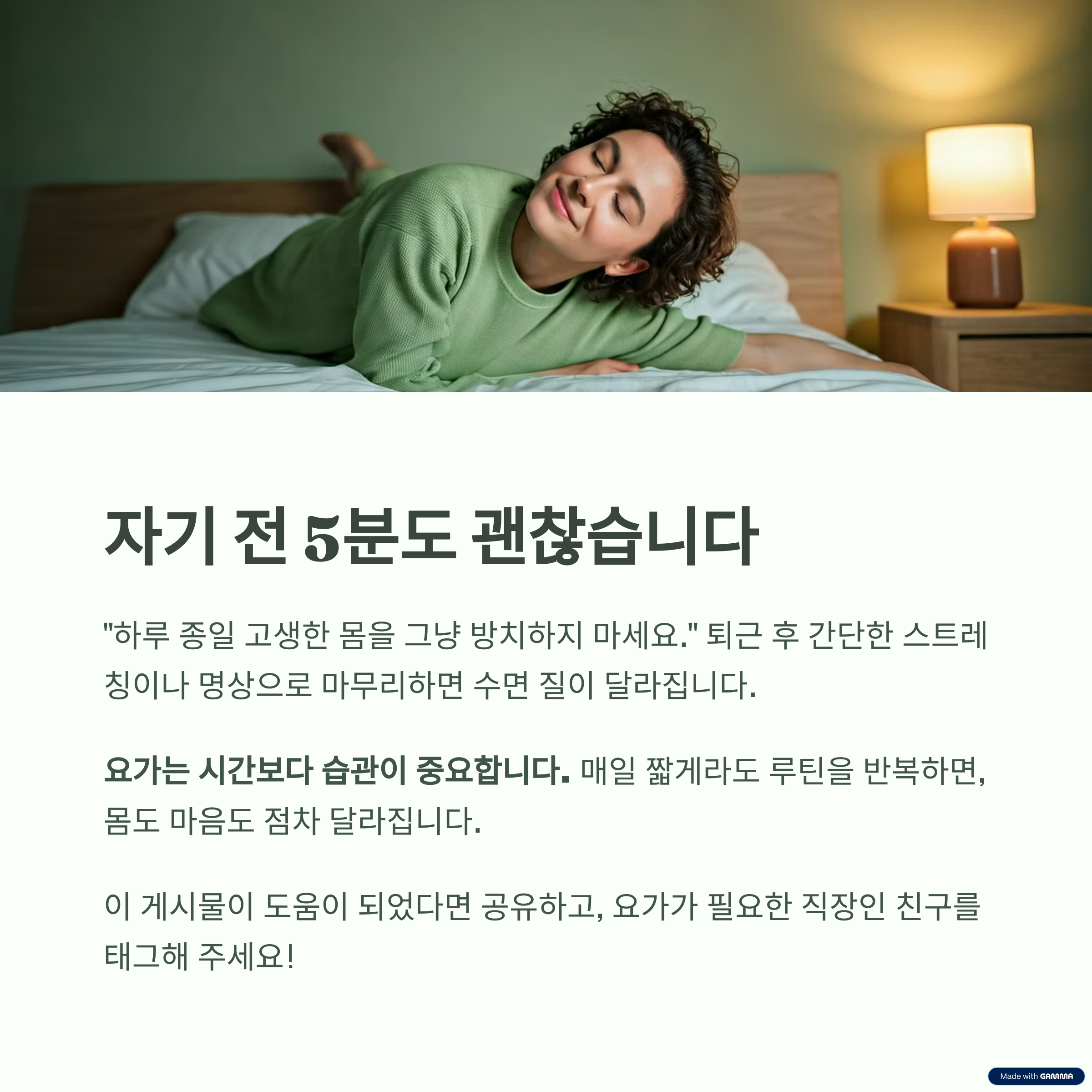 마무리 요가 팁: "자기 전 5분도 괜찮습니다"
