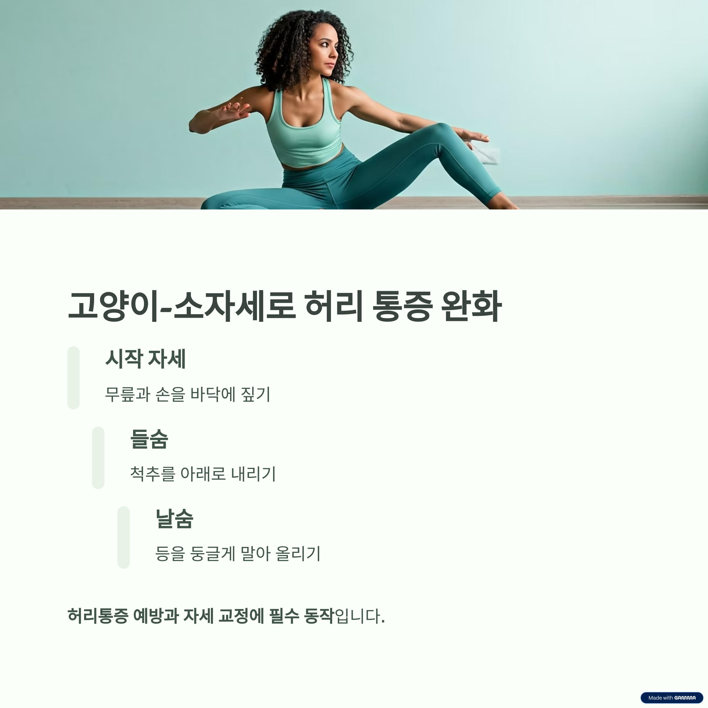 허리 통증 완화를 위한 '고양이-소자세' 루틴