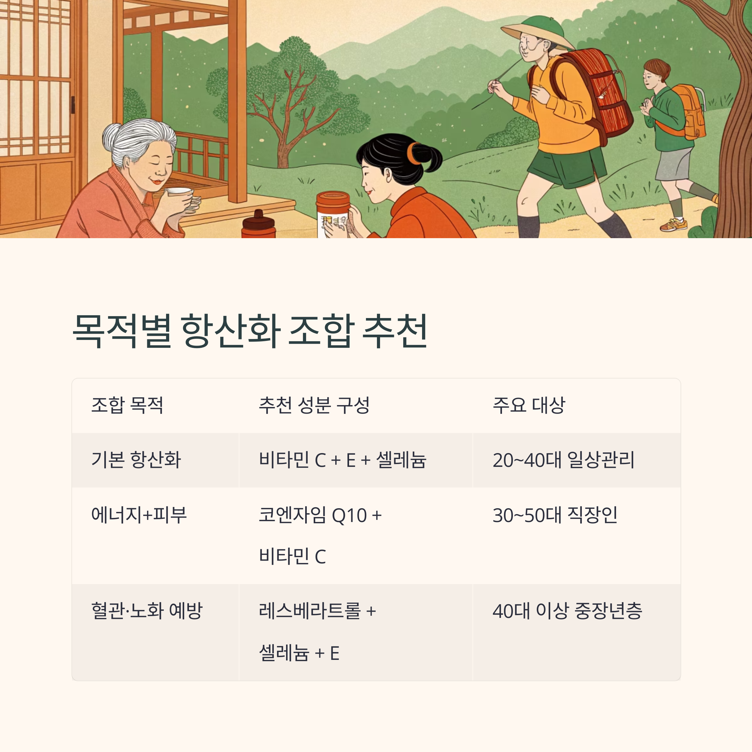 추천 조합별 항산화 건강기능식품 구성 예시
