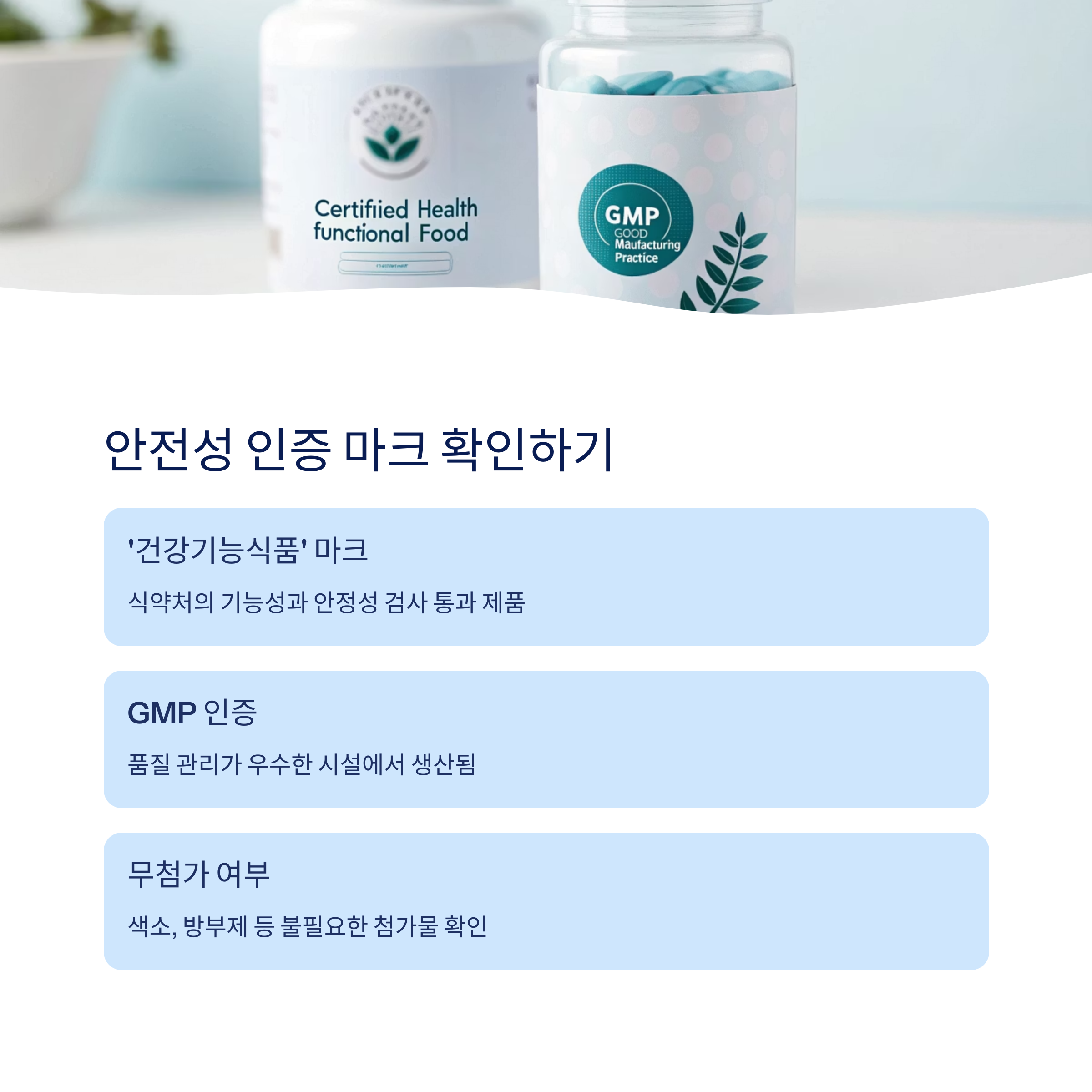 또한 **GMP 인증 마크(Good Manufacturing Practice)**가 있는지 확인하면