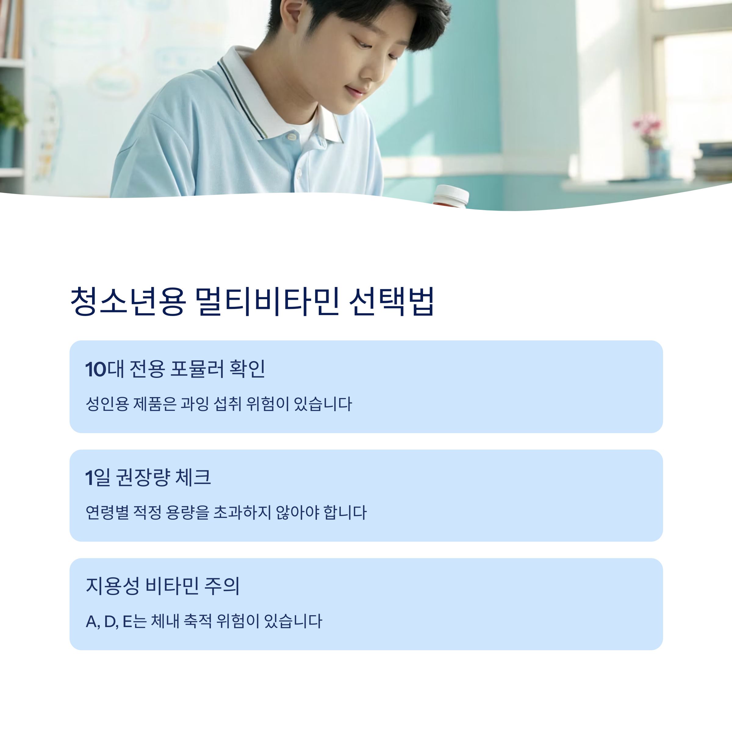 10대 전용 포뮬러인지, 연령별 1일 권장량을 초과하지 않는지 확인이 중요합니다.
