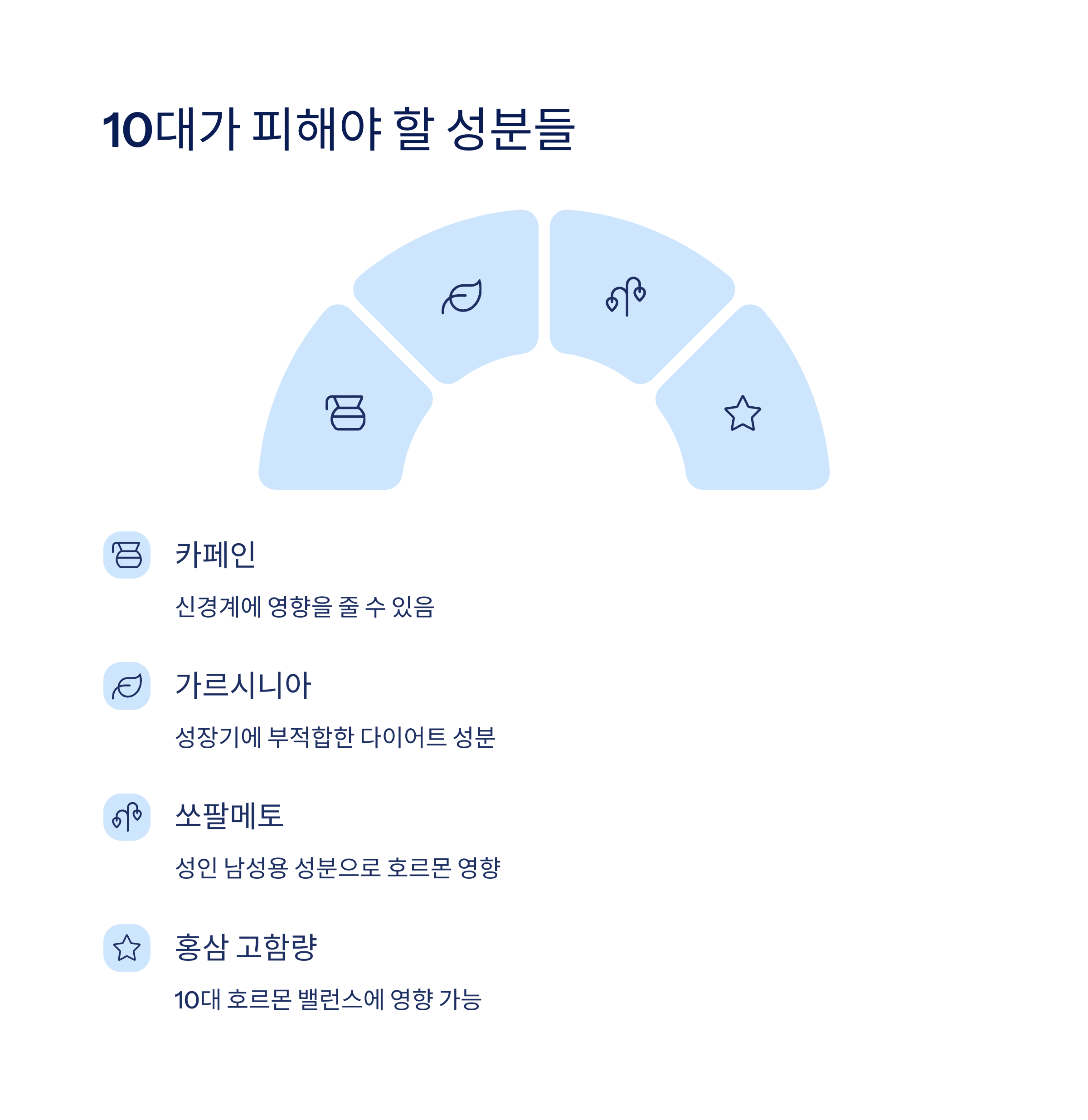 이 성분들은 10대의 신경계와 호르몬 밸런스에 영향을 줄 수 있어